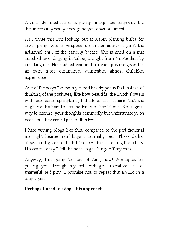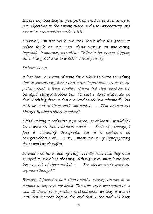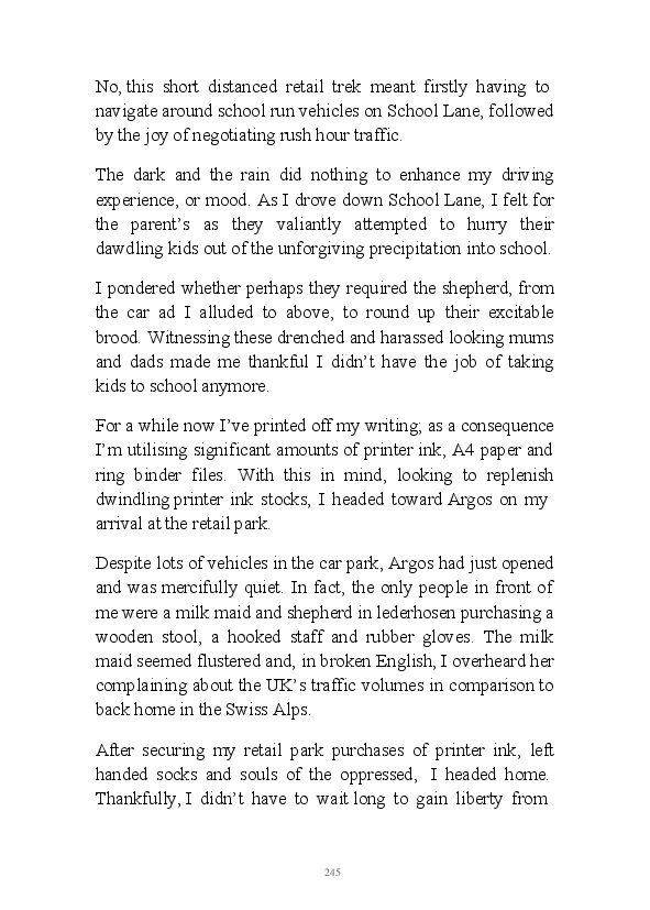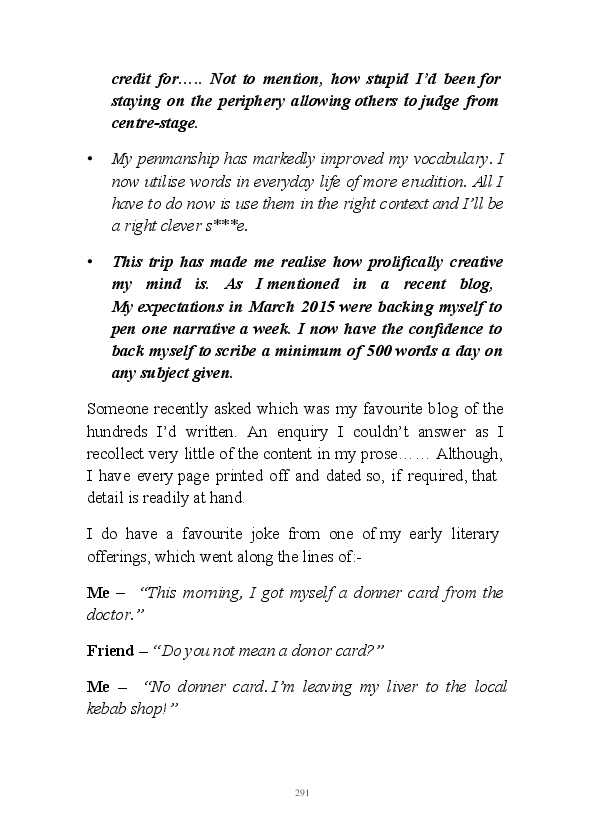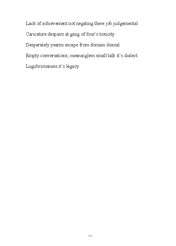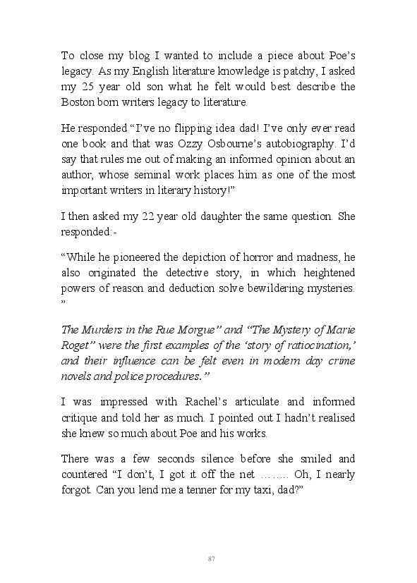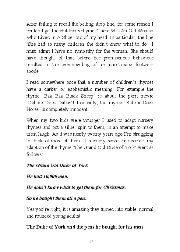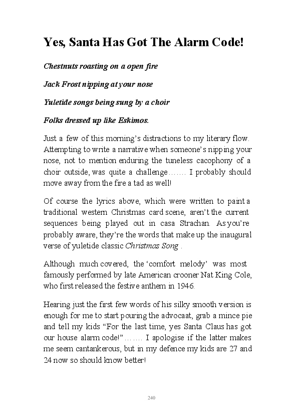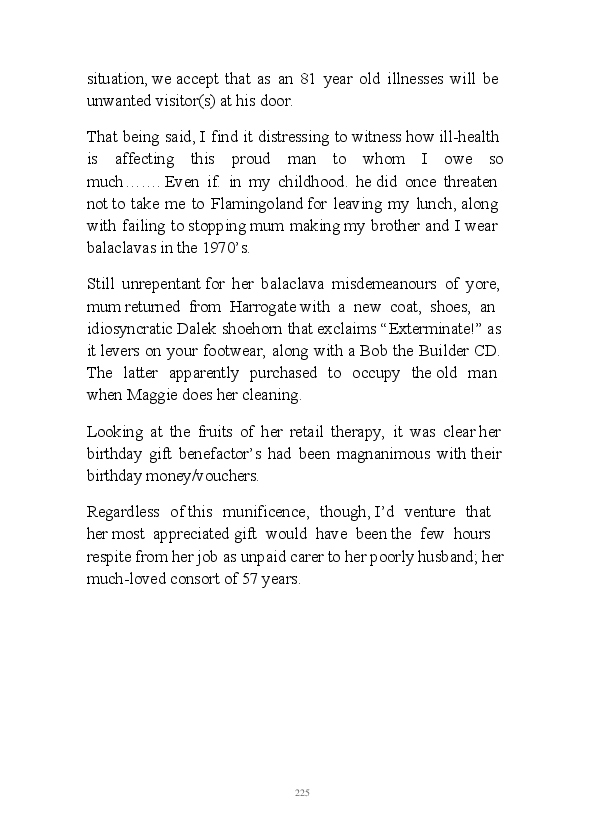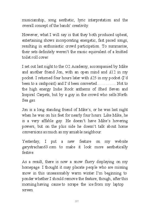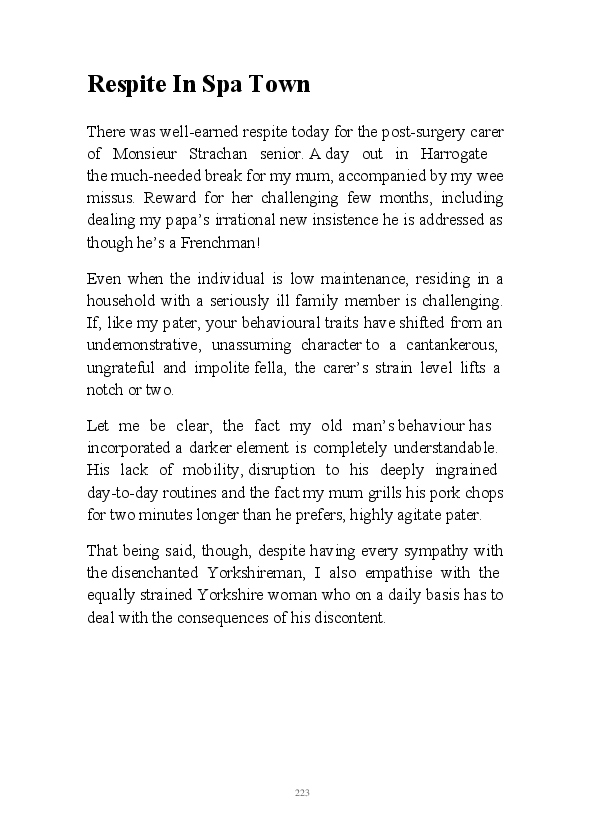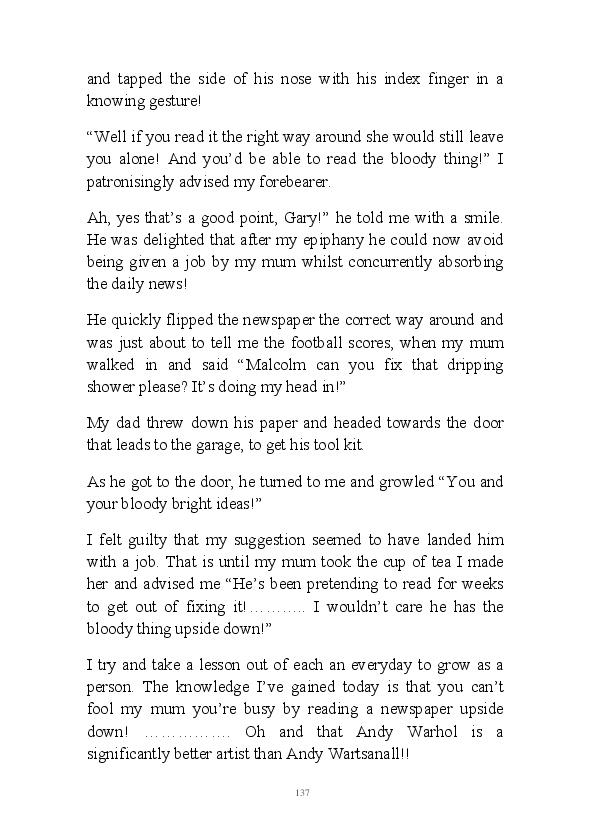 'Poetry & Emotion' contains Mr Strachan's final daily blogs before he packed it all in to embark on an alternative hair-brained literary project. To pad the book out a bit, the author has added some unread poems and older narratives. He's published them before but website statistics indicate they've remained unread. The last blog was his 1000th piece of prose during his 1002 day lexilogical sojourn..... And, no you can't have your money back, you've not bloody paid for it!