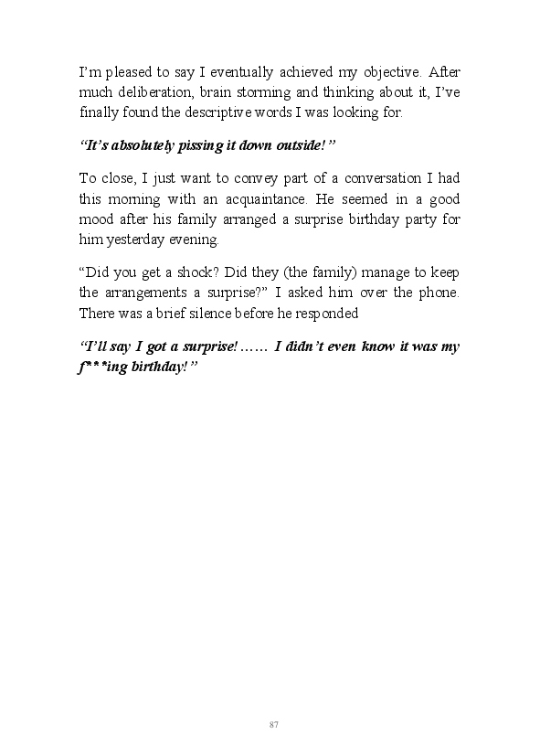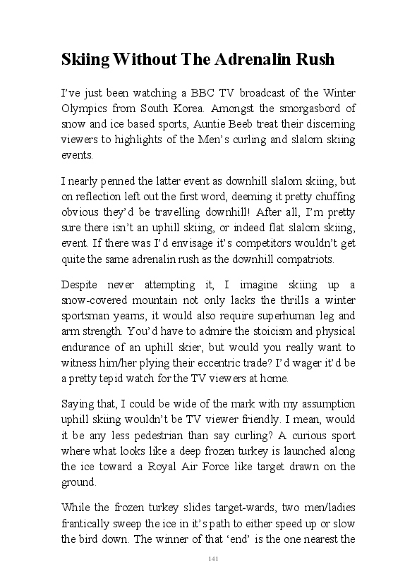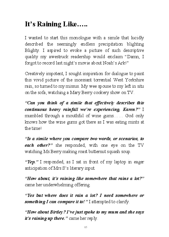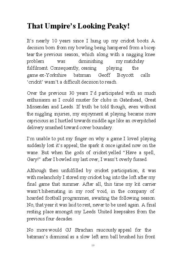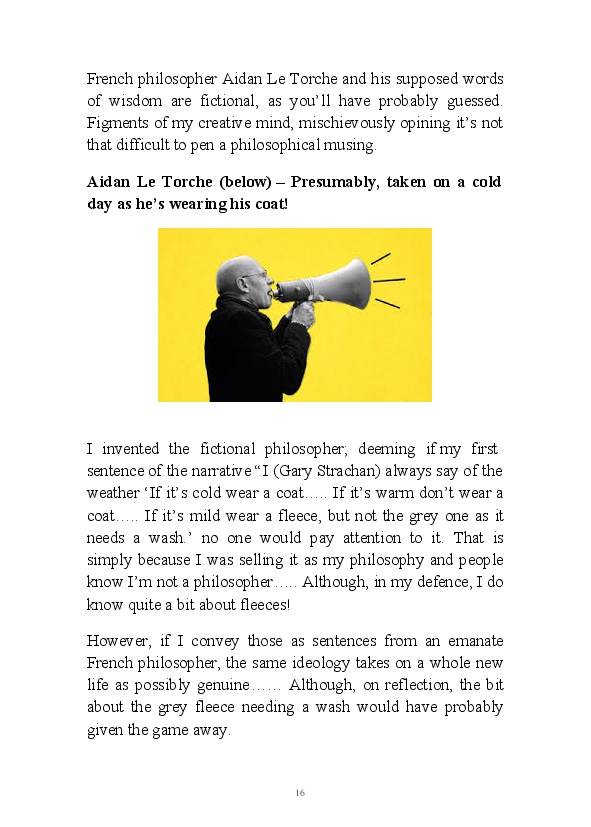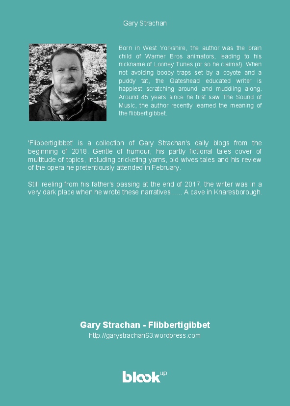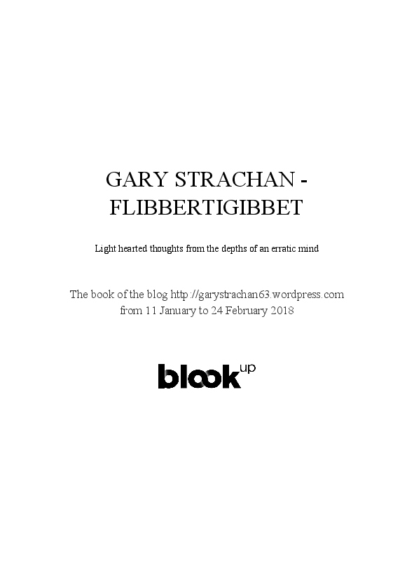 'Flibbertigibbet' is a collection of Gary Strachan's daily blogs from the beginning of 2018. Gentle of humour, his partly fictional tales cover of multitude of topics, including cricketing yarns, old wives tales and his review of the opera he pretentiously attended in February.