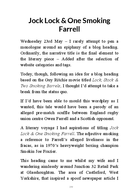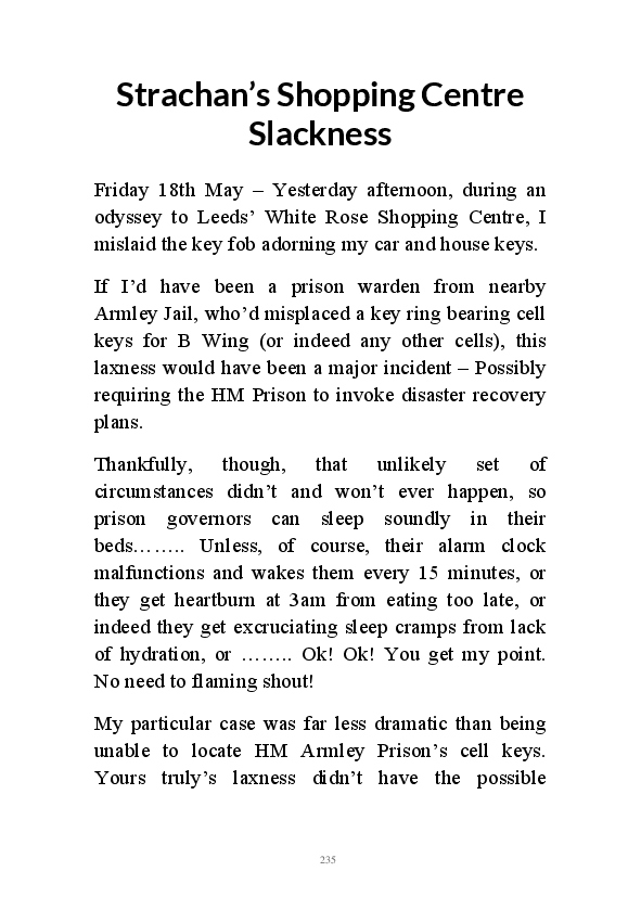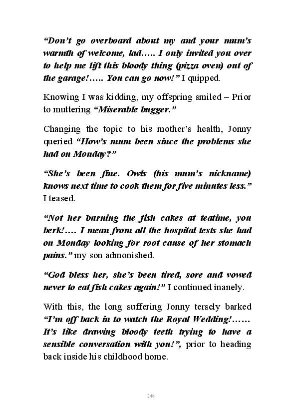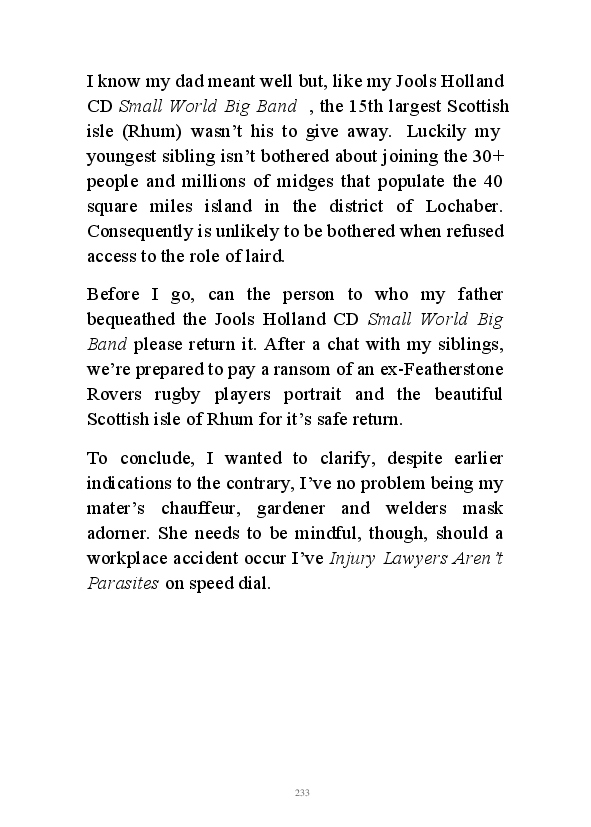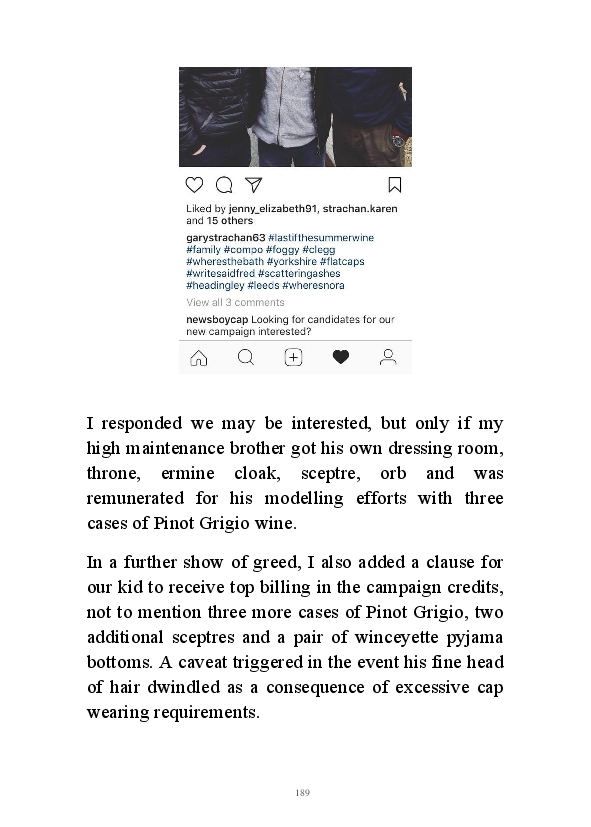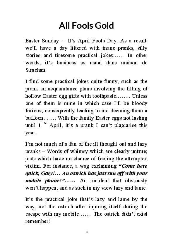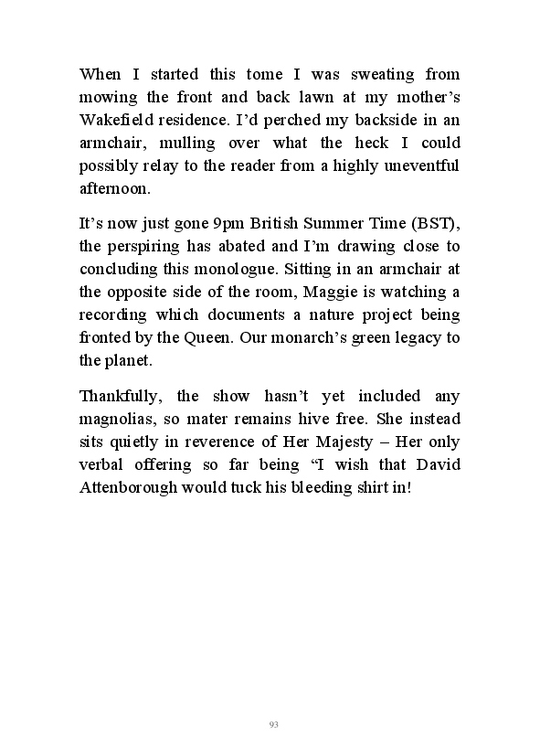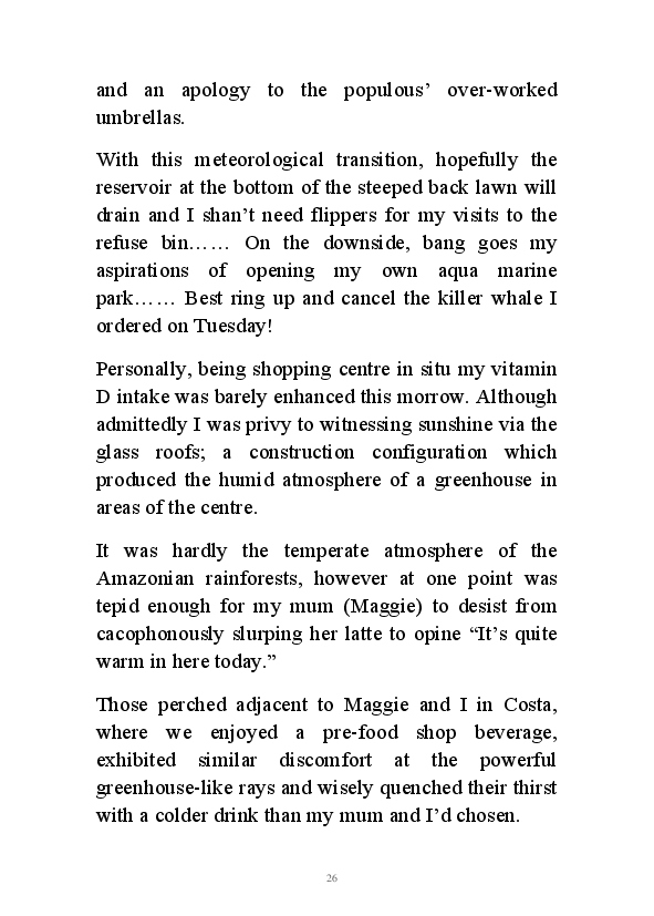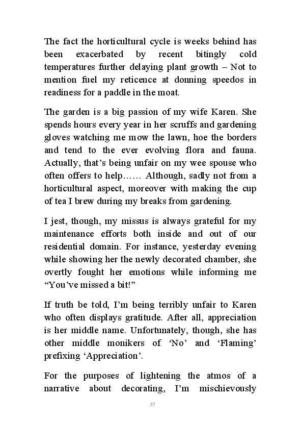 'Rise & Shine Squire' is the author's nineteenth self-publication. Like the other eighteen tomes, it contains self-indulgent flights of whimsy, first seen on his website writesaidfred.org - Included in his yarns are eccentric tales of learning to drive, an idiosyncratic family discussion about TV presenter Lorraine Kelly's curry preferences and why his wife has the nickname of Owls when she isn't an owl. Maverick of character, the author is going to say his next book is his 21st offering, even though its only his 20th.