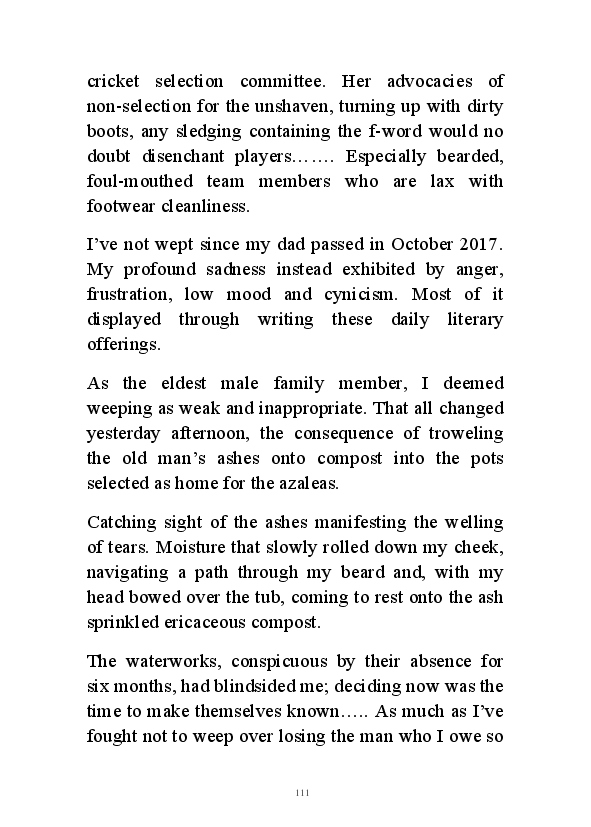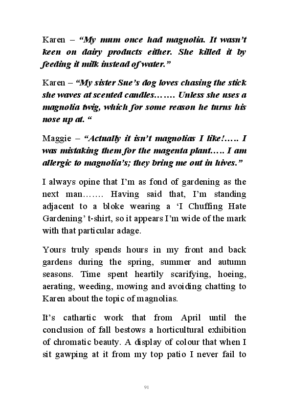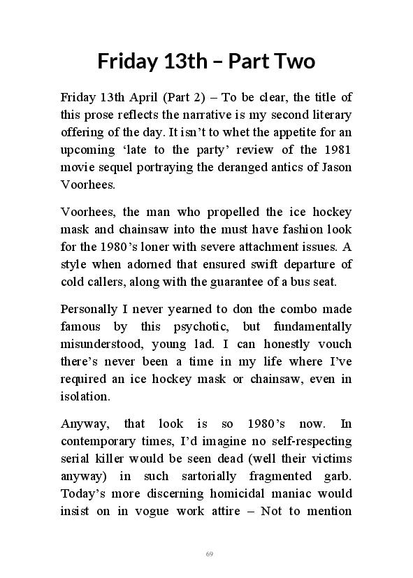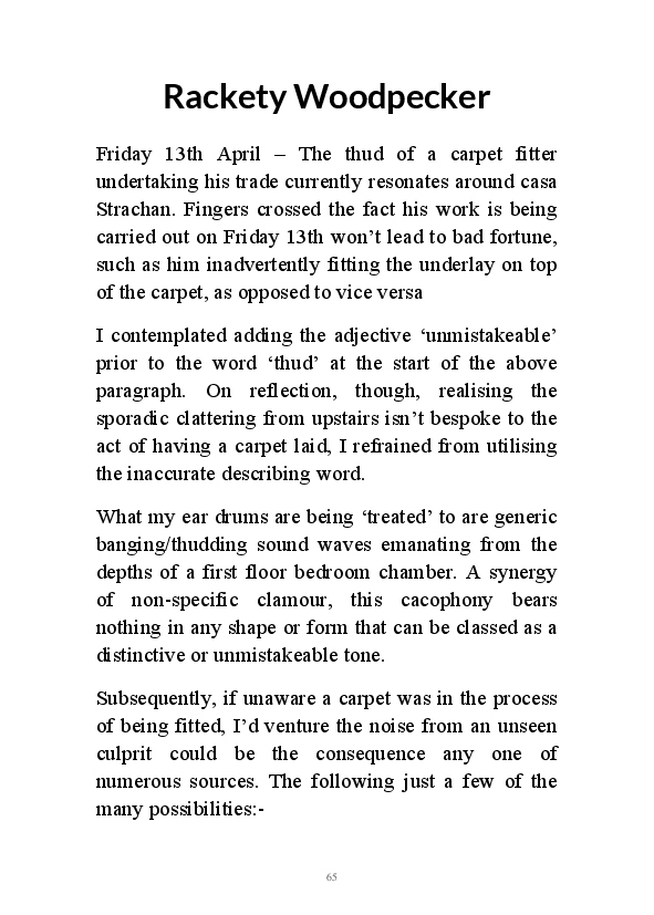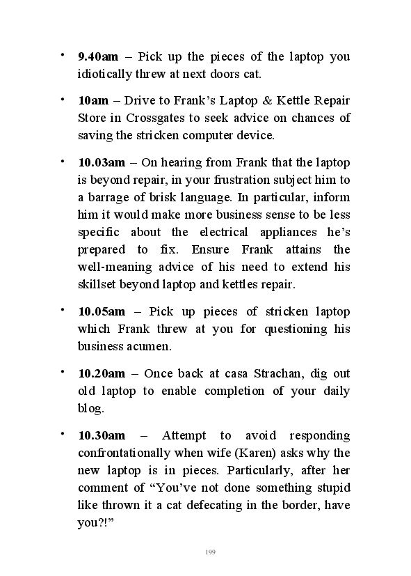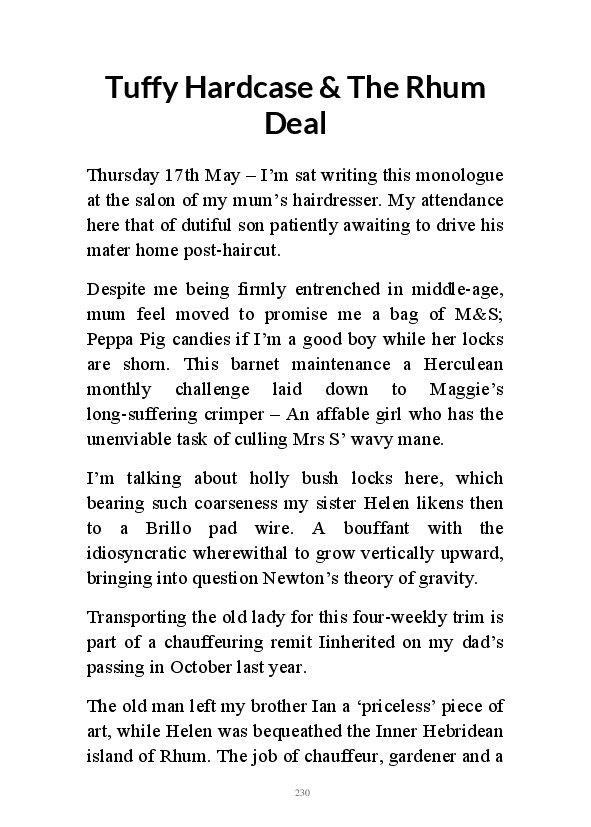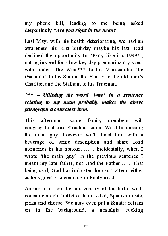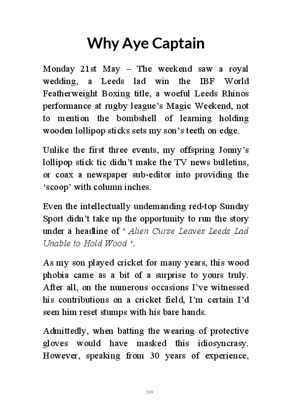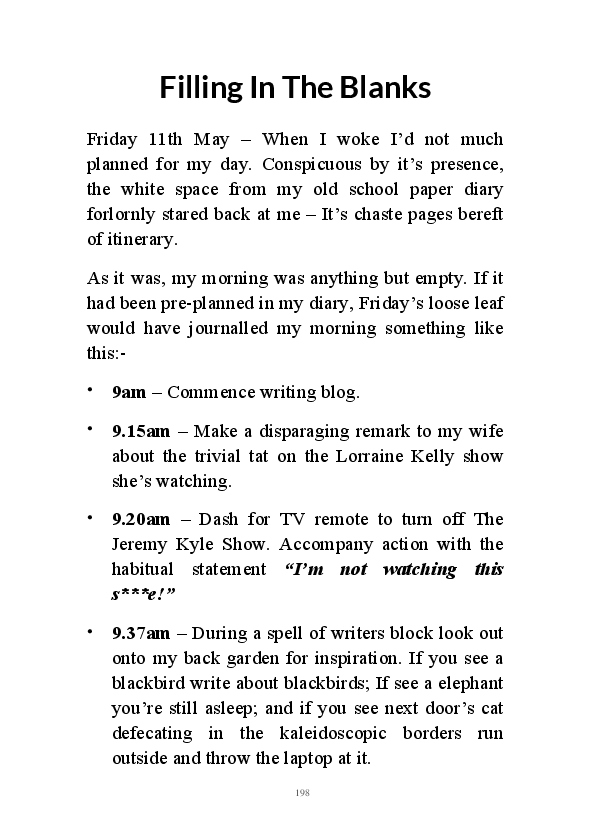 'Rise & Shine Squire' is the author's nineteenth self-publication. Like the other eighteen tomes, it contains self-indulgent flights of whimsy, first seen on his website writesaidfred.org - Included in his yarns are eccentric tales of learning to drive, an idiosyncratic family discussion about TV presenter Lorraine Kelly's curry preferences and why his wife has the nickname of Owls when she isn't an owl. Maverick of character, the author is going to say his next book is his 21st offering, even though its only his 20th.