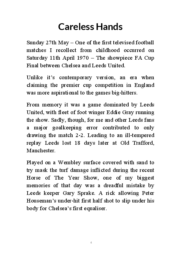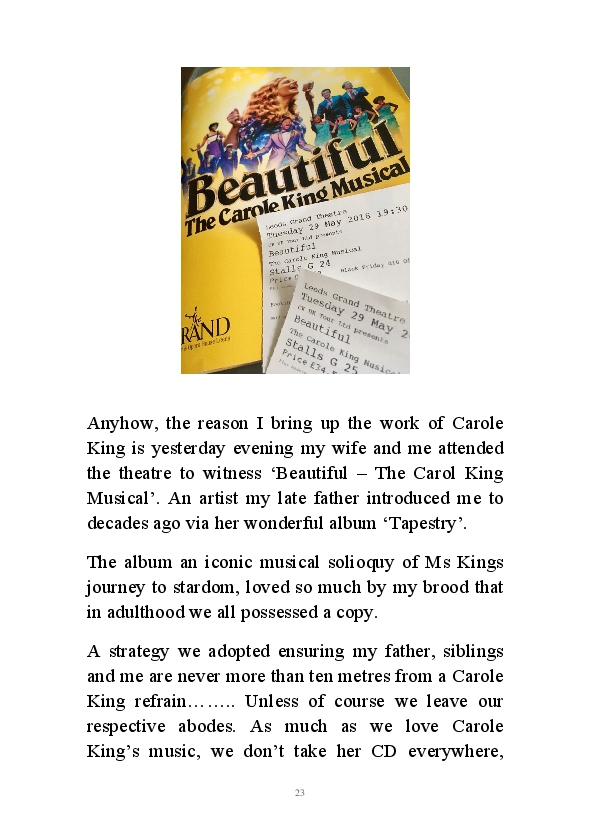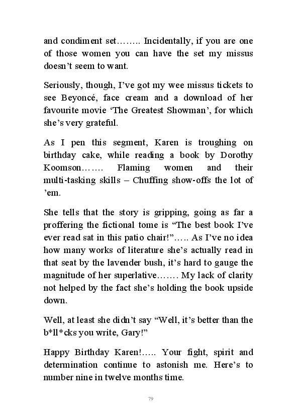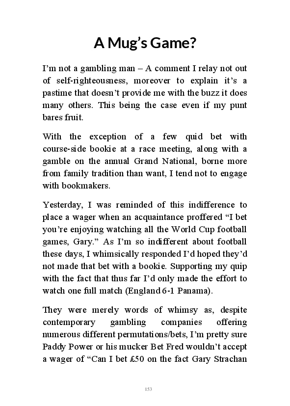 'Flat Cap Epiphanies' are excerpts of Gary Strachan's whimsical literary jaunts during May, June and July 2018. They include laughter, sadness, gout and the other one making up the four Horseman of the Apocalypse; whose name currently escapes the writer.