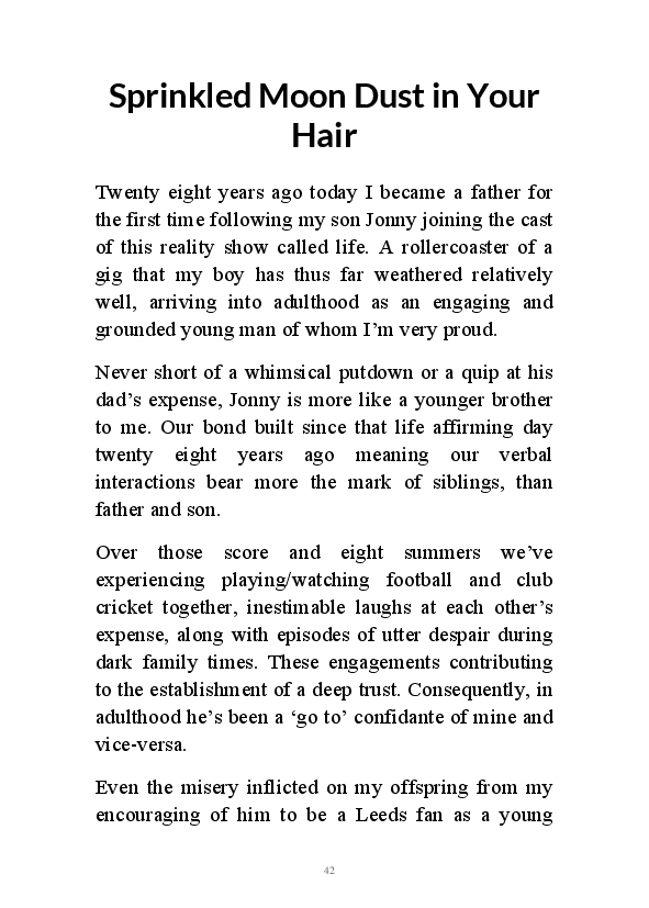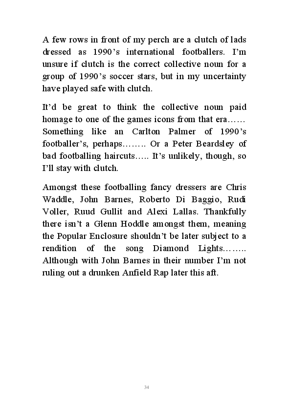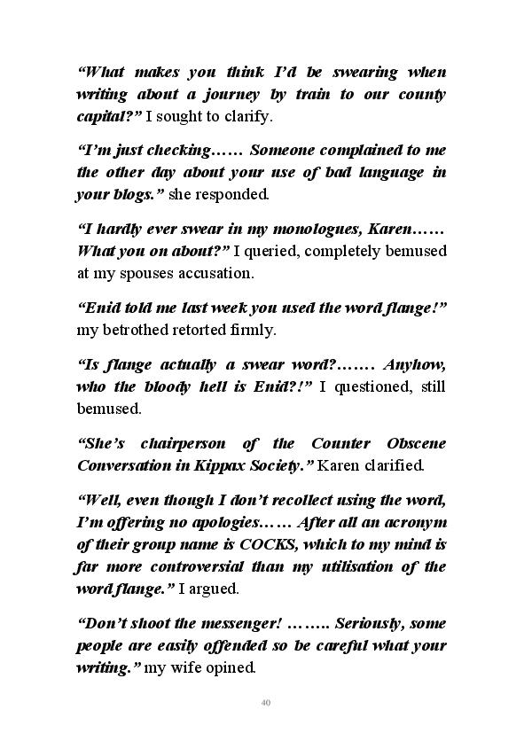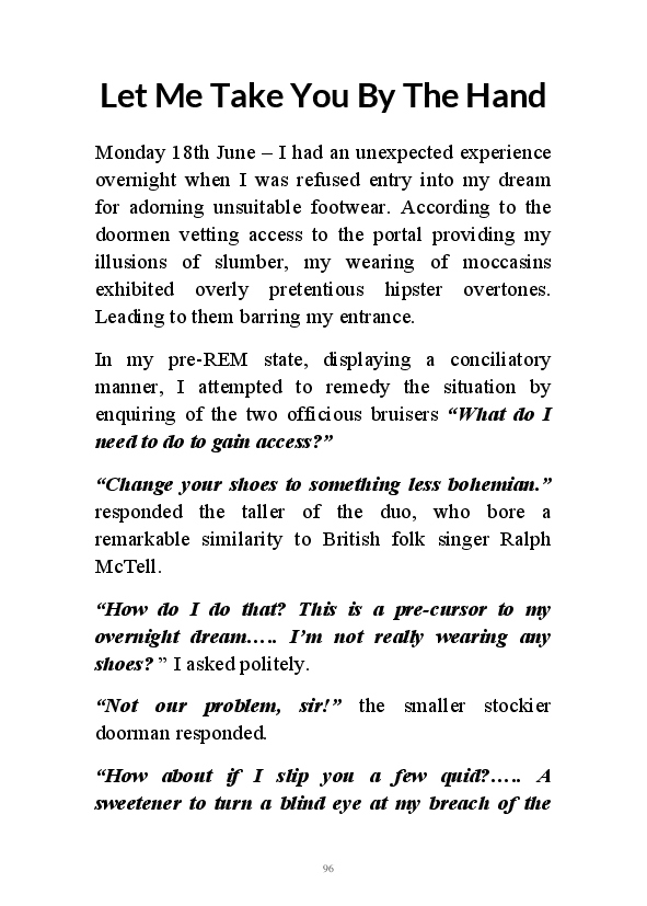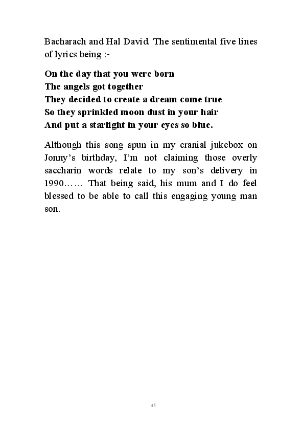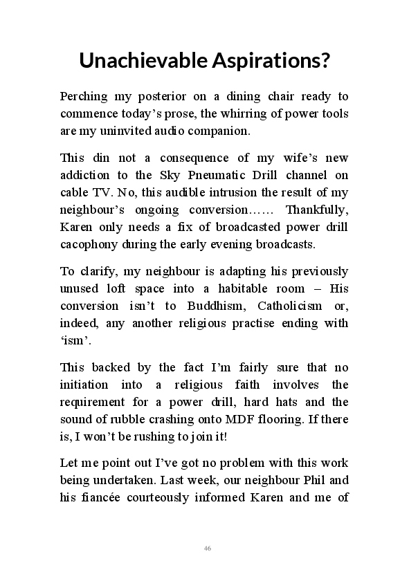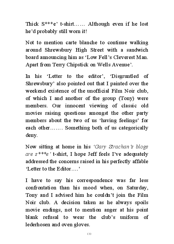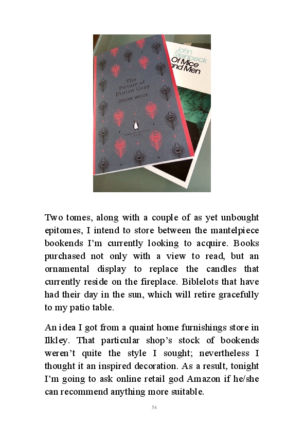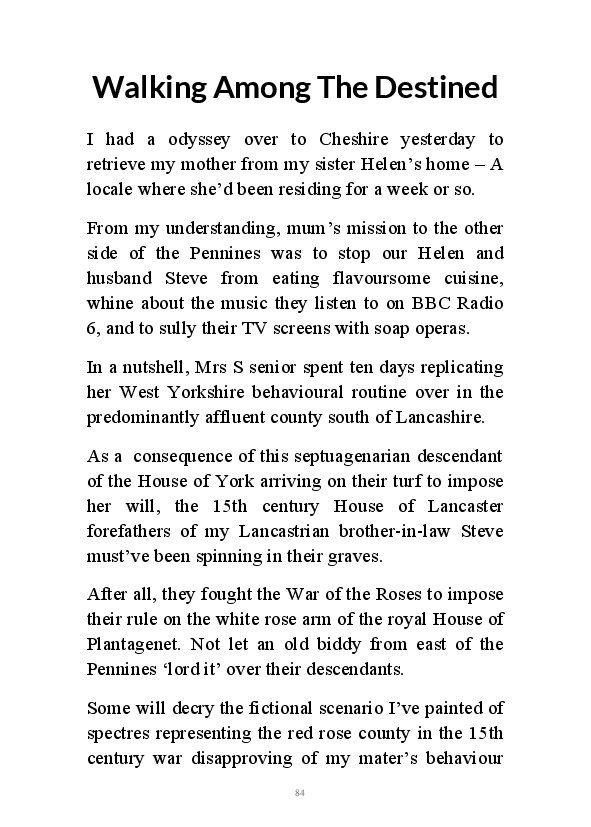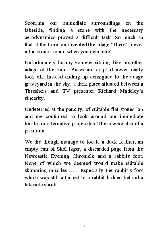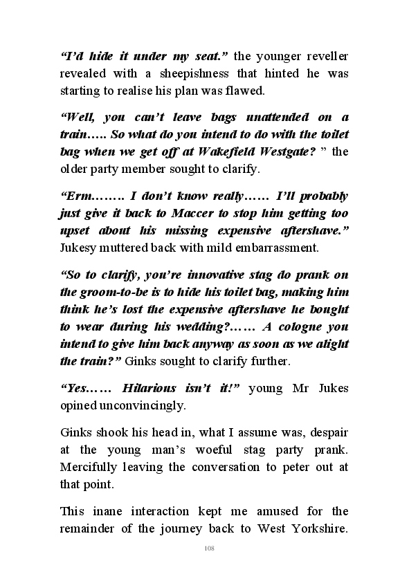 Yarns include reviews of gigs he attended during the period in the cities of London and Oxford, pedestrian tales of middle age men holidaying in the Lake District, along with his foolish proposal to change his name by deed poll to Mr Spoons.