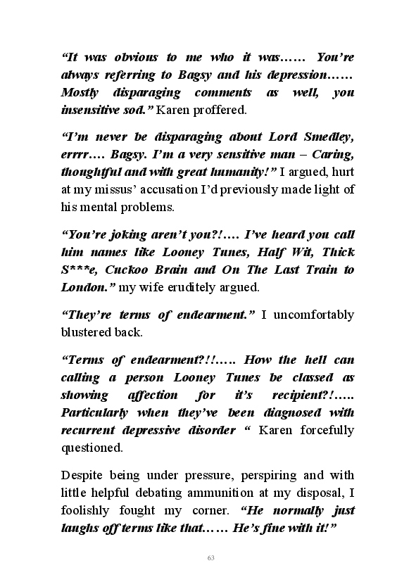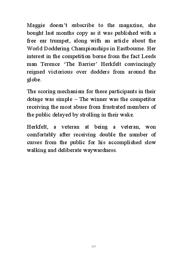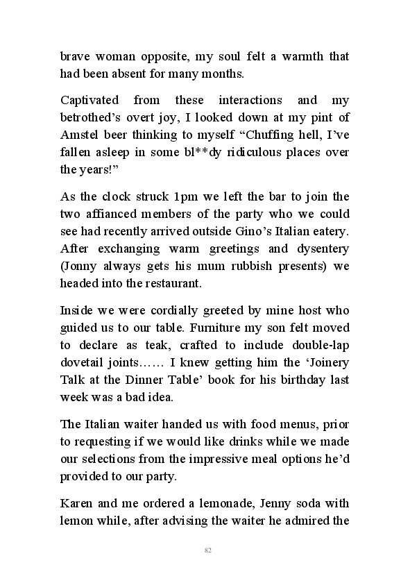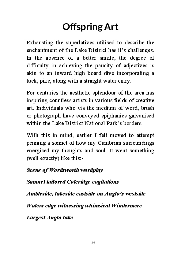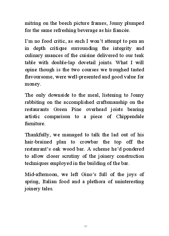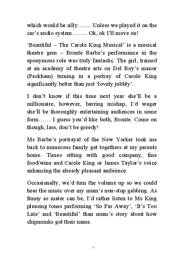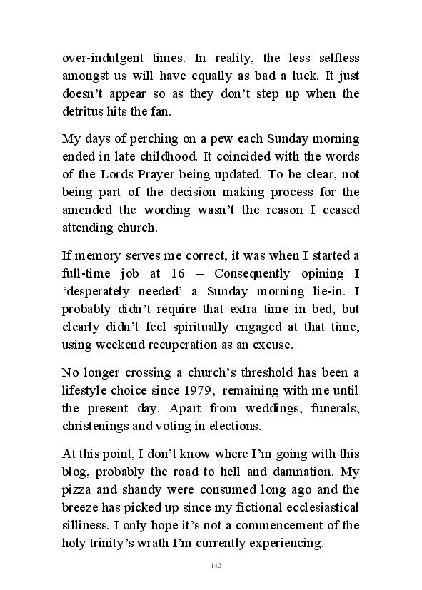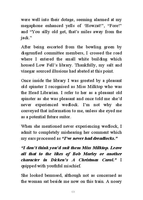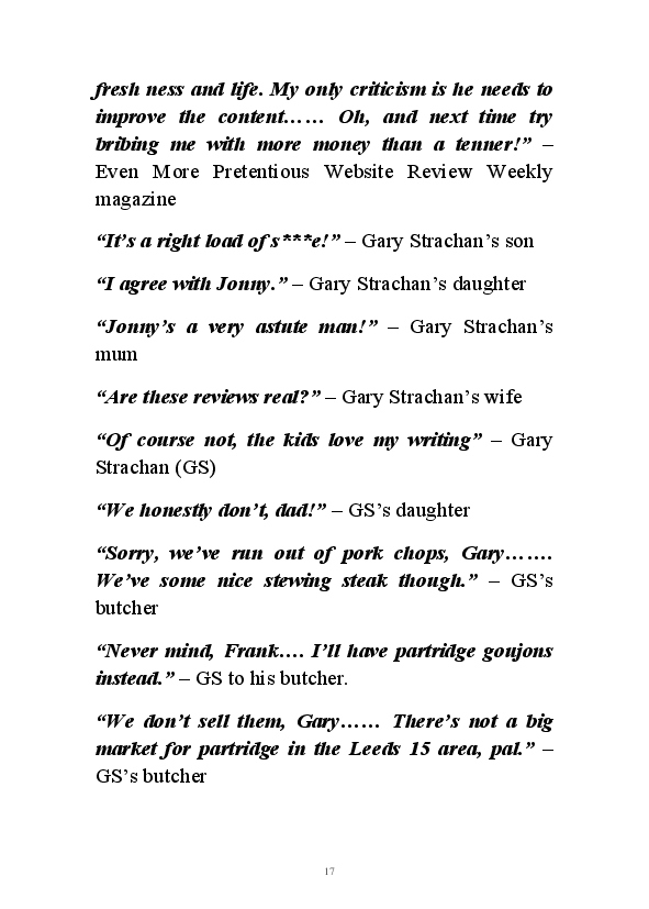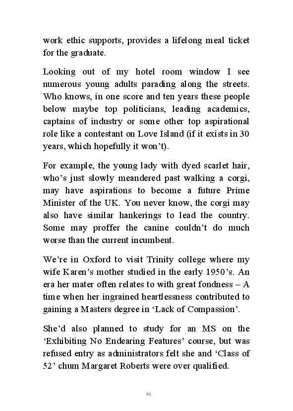 Yarns include reviews of gigs he attended during the period in the cities of London and Oxford, pedestrian tales of middle age men holidaying in the Lake District, along with his foolish proposal to change his name by deed poll to Mr Spoons.