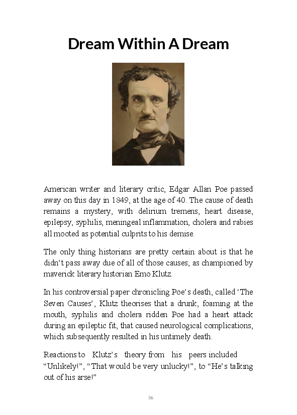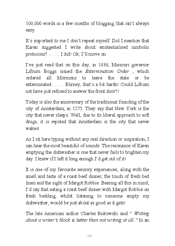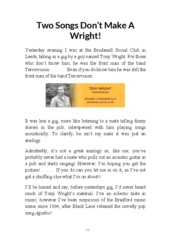 Walt Disnae contains previously unpublished narratives first written by the author at the end of 2015. The book title comes from the old quip about Glaswegian pronounciation "Sinatra sings but Walt Disnae." This whimsical comment contained within one of the enclosed monologues. These being very early efforts at writing daily blogs they're rougher around the edges than his contemporary literary efforts. That being said, his mum feels his observations are still worth a read.