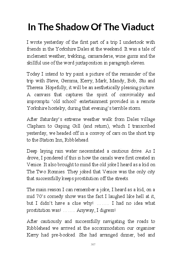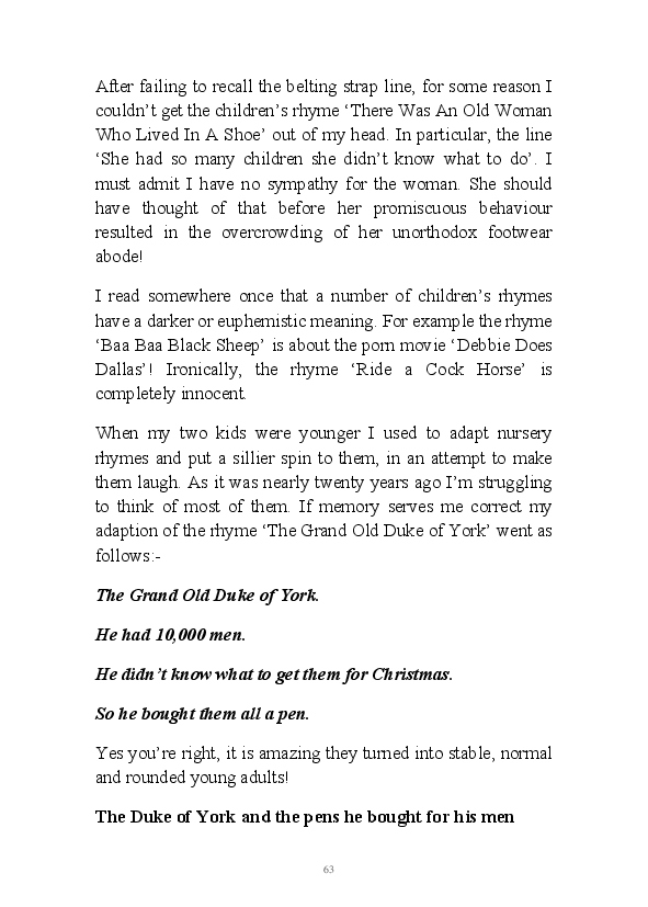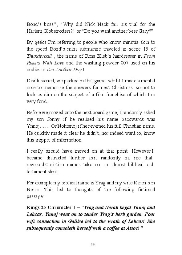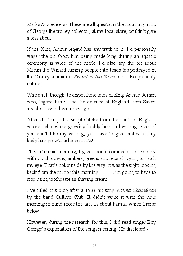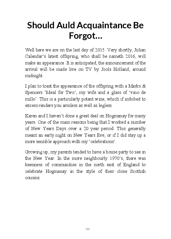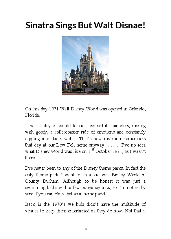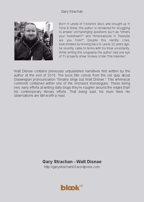 Walt Disnae contains previously unpublished narratives first written by the author at the end of 2015. The book title comes from the old quip about Glaswegian pronounciation "Sinatra sings but Walt Disnae." This whimsical comment contained within one of the enclosed monologues. These being very early efforts at writing daily blogs they're rougher around the edges than his contemporary literary efforts. That being said, his mum feels his observations are still worth a read.