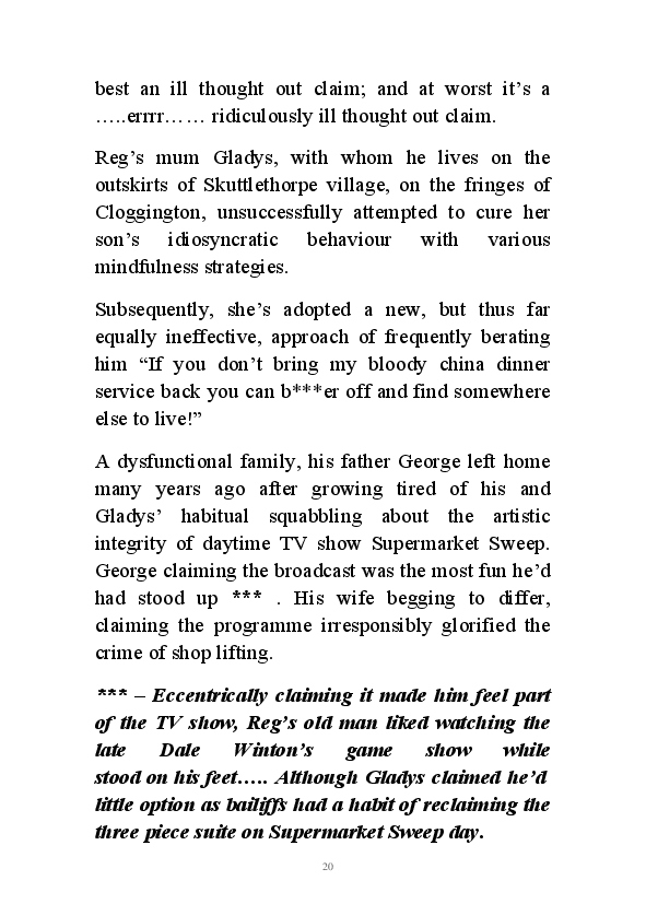 This is the author's 29th self-published book, although it nearly didn't happen after he suffered a cardiac arrest in early January. "Clear!!!" contains excerpts from the author's daily whimsical observations published on his website writesaidfred.org, including narratives written after his health scare. Despite his recent skirt with death and subsequent promises to exhibit a chirpier disposition, the writer's mother still opines his face is so miserable it could stop a clock.