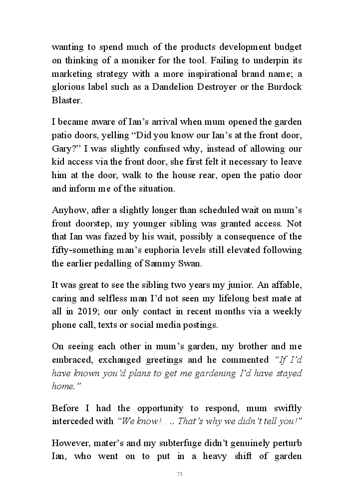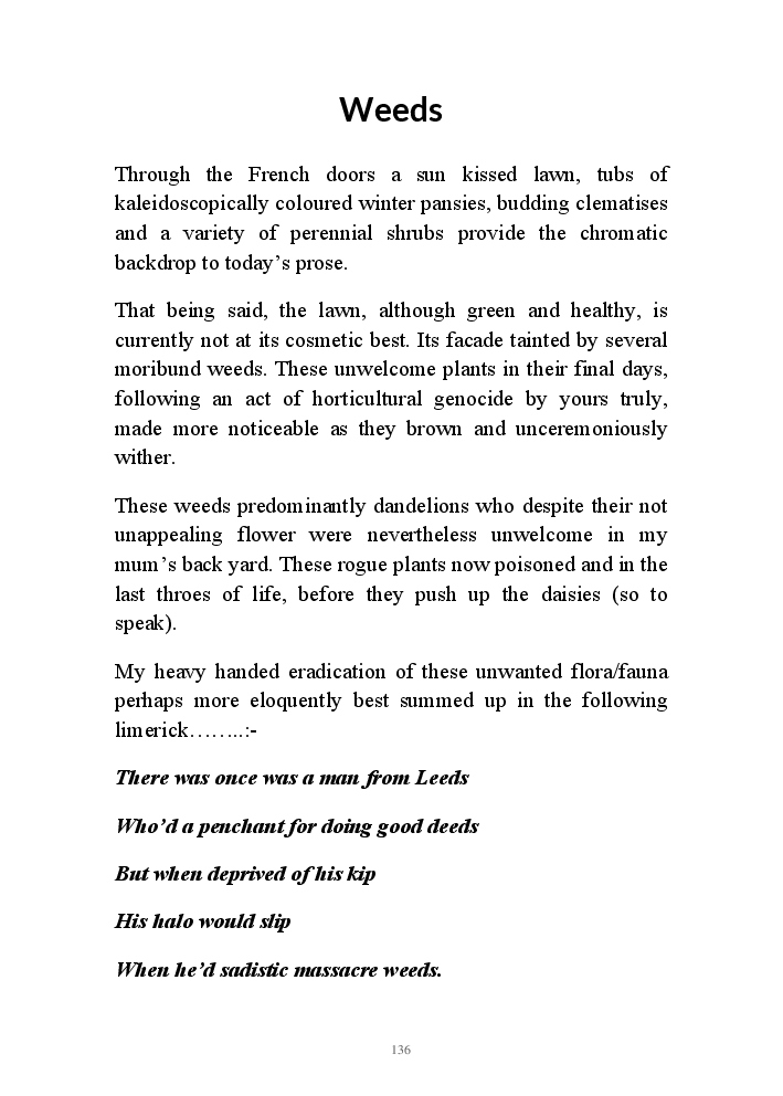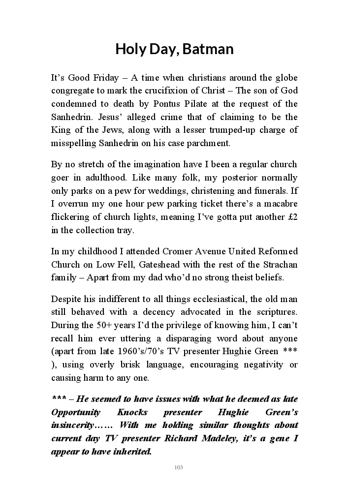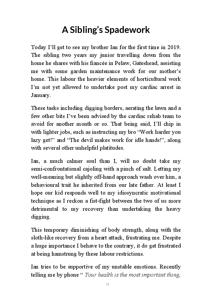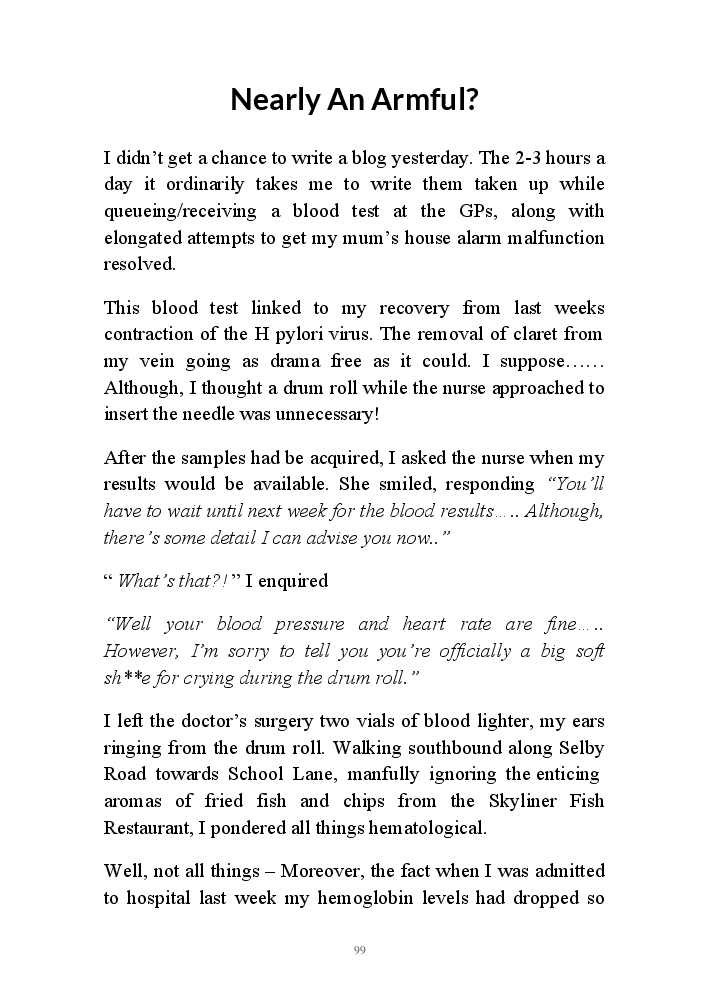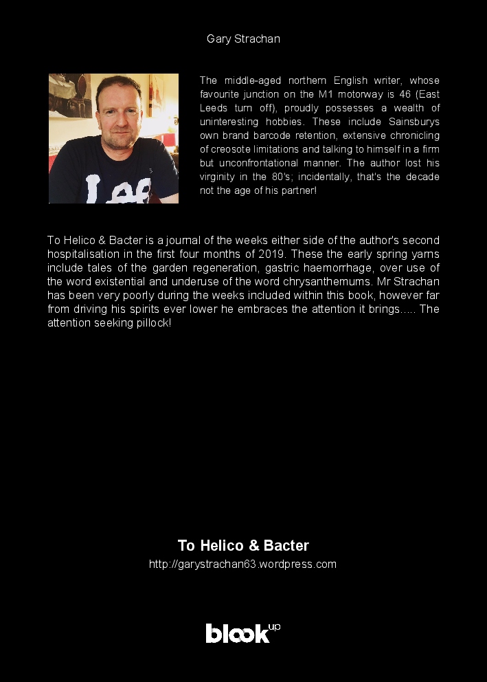 To Helico & Bacter is a journal of the weeks either side of the author's second hospitalisation in the first four months of 2019. These the early spring yarns include tales of the garden regeneration, gastric haemorrhage, over use of the word existential and underuse of the word chrysanthemums. Mr Strachan has been very poorly during the weeks included within this book, however far from driving his spirits ever lower he embraces the attention it brings..... The attention seeking pillock!