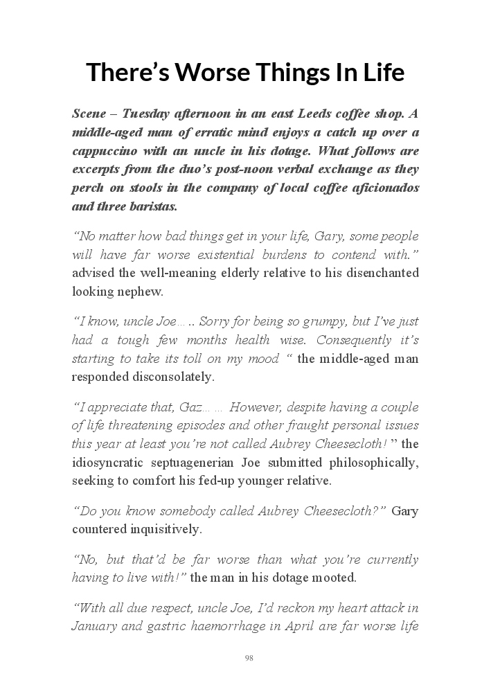Bladder Quandaries has absolutely nothing to do with the passing of urine. The northern English author merely used the title so he could subsequently utilise the weak parody subtitle of To Pee, Or Not To Pee - That Is The Question. The tome actually contains excerpts from the whimsical daily narratives published on his website writesaidfred.org in late summer 2019. The writer has never knowingly overpaid for plaid.