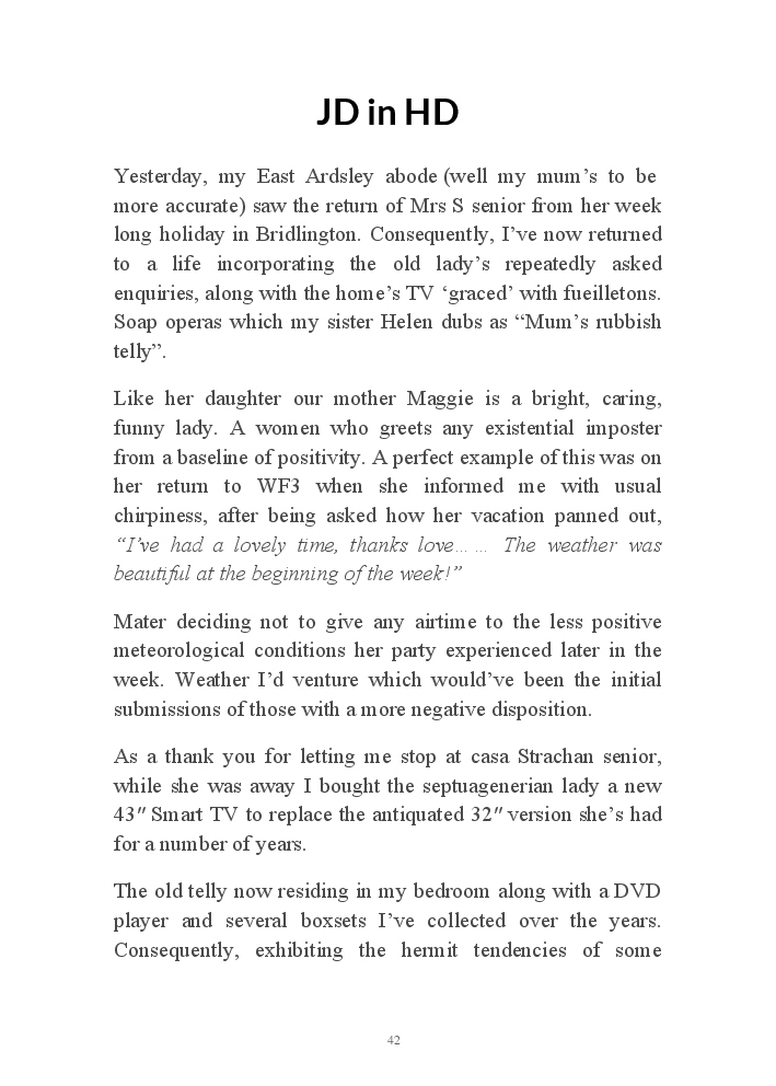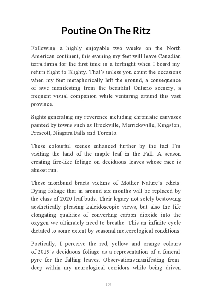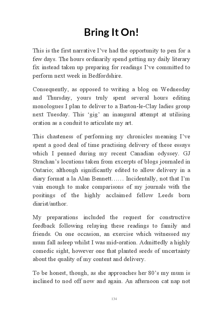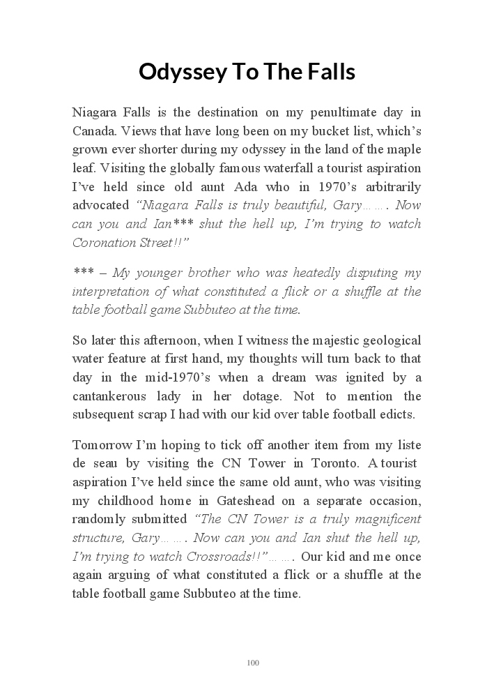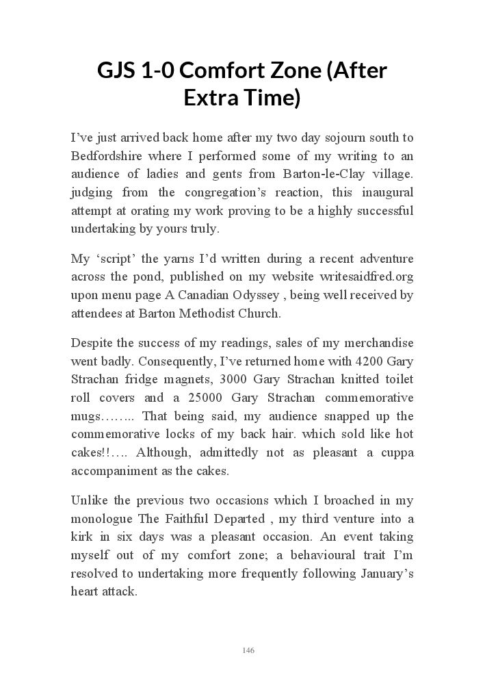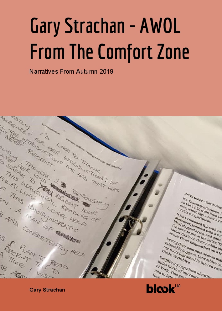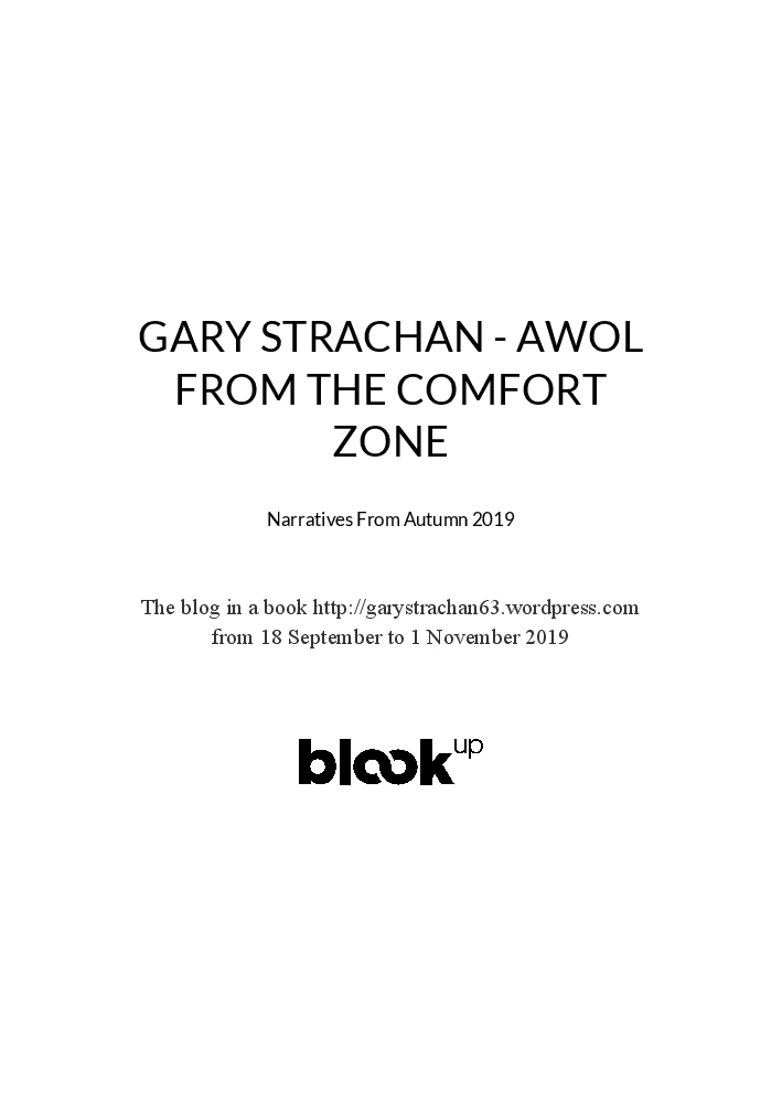 'AWOL From The Comfort Zone' contains the author's early autumnal journals, including narratives about his two odyssey to Canada odyssey in October, along with tales of his inaugural performance his narratives to a live audience. Within the book Strachan whimsically tells of how he learned the 417 verses of the Danish national anthem, along with the traumatic experience which led to a paucity of showering and subsequent personal hygiene issues.