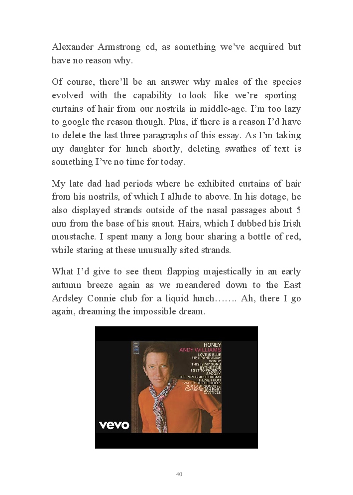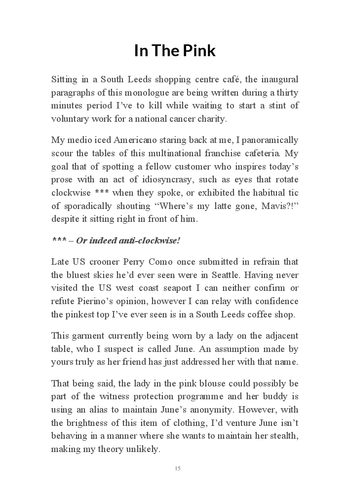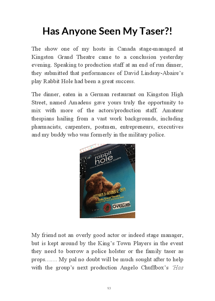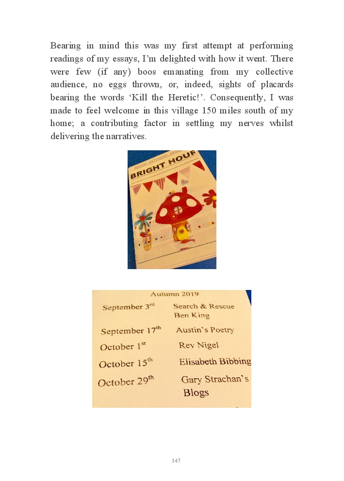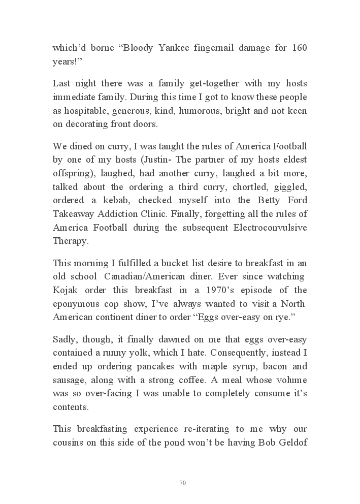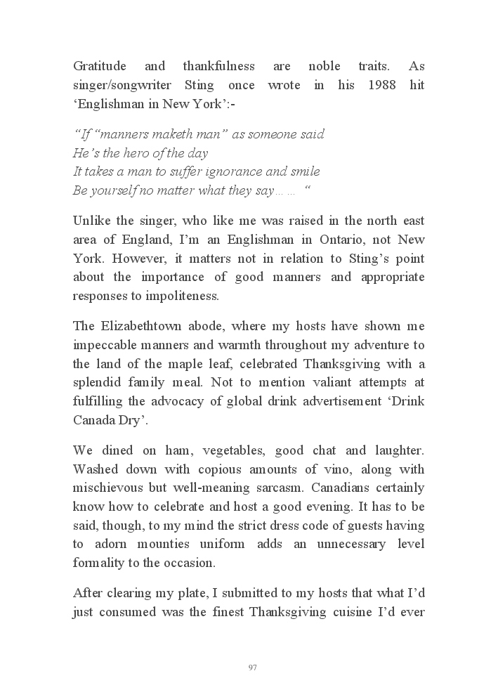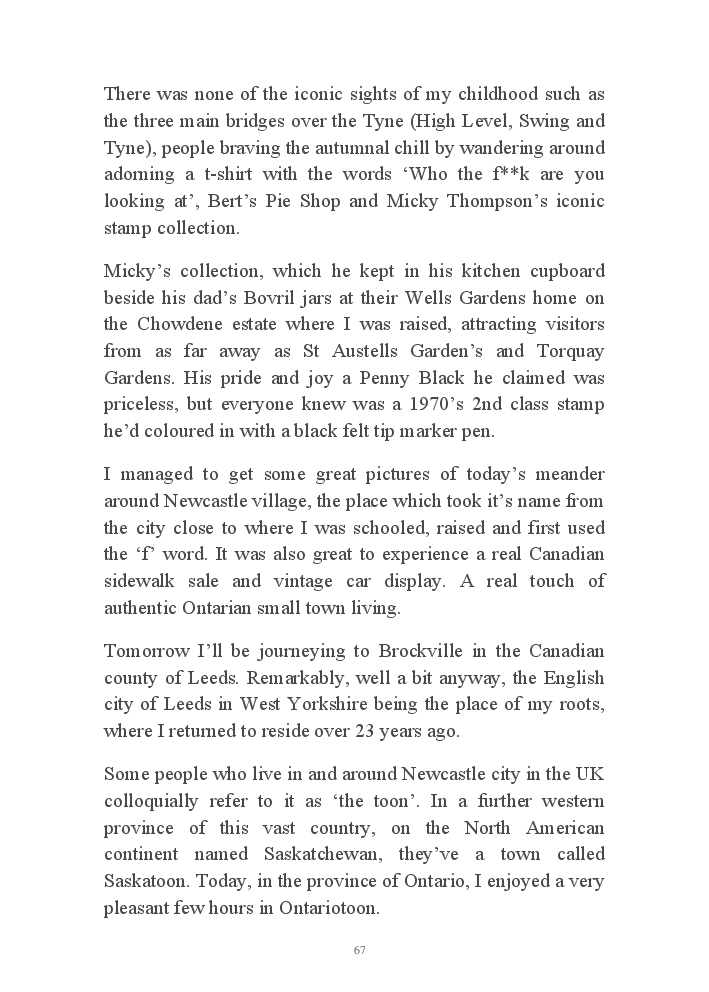 'AWOL From The Comfort Zone' contains the author's early autumnal journals, including narratives about his two odyssey to Canada odyssey in October, along with tales of his inaugural performance his narratives to a live audience. Within the book Strachan whimsically tells of how he learned the 417 verses of the Danish national anthem, along with the traumatic experience which led to a paucity of showering and subsequent personal hygiene issues.