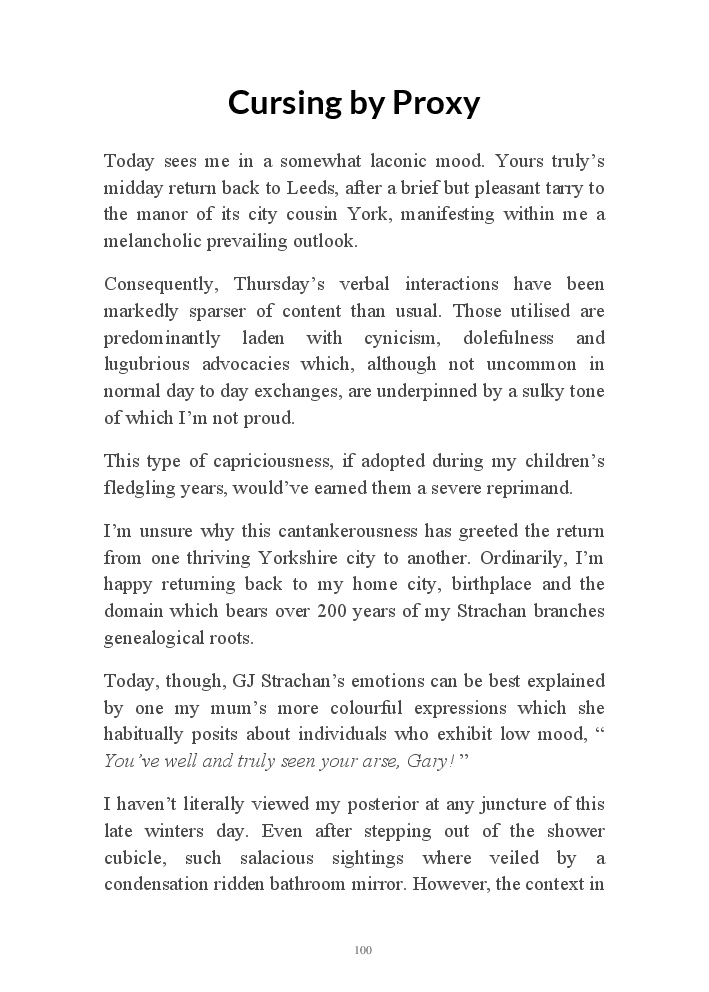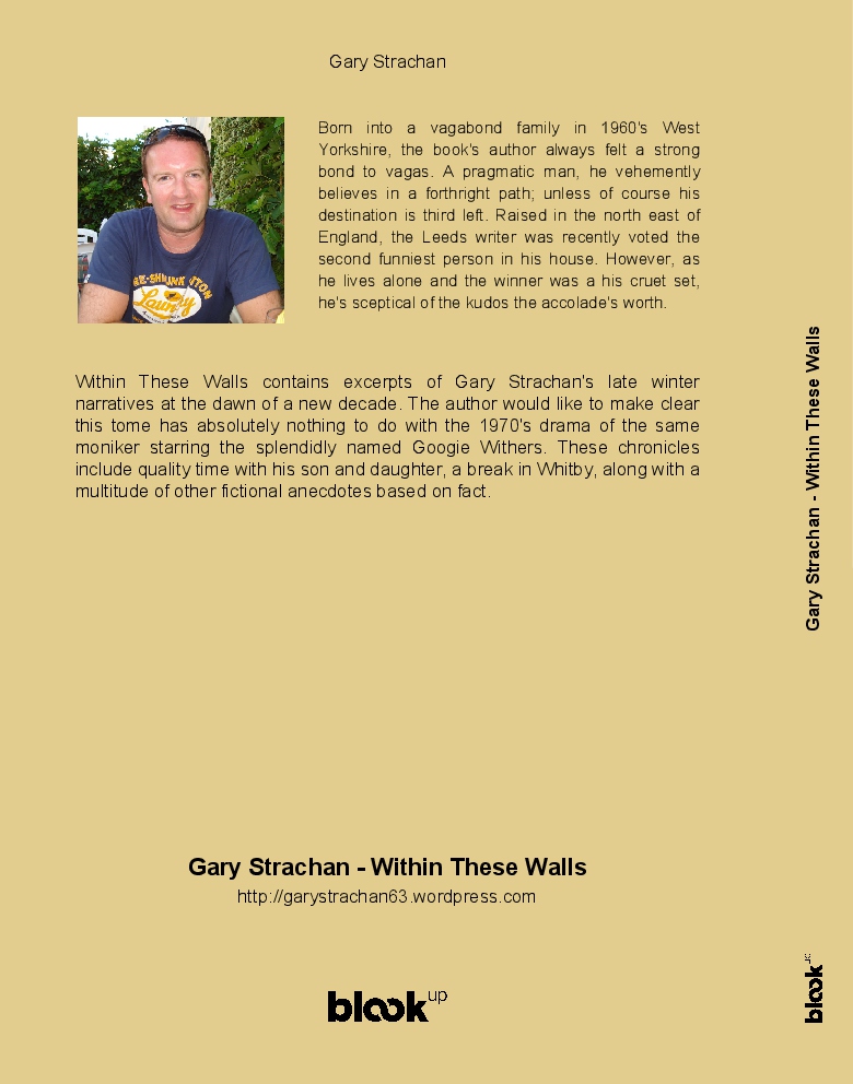 Within These Walls contains excerpts of Gary Strachan's late winter narratives at the dawn of a new decade. The author would like to make clear this tome has absolutely nothing to do with the 1970's drama of the same moniker starring the splendidly named Googie Withers. These chronicles include quality time with his son and daughter, a break in Whitby, along with a multitude of other fictional anecdotes based on fact.