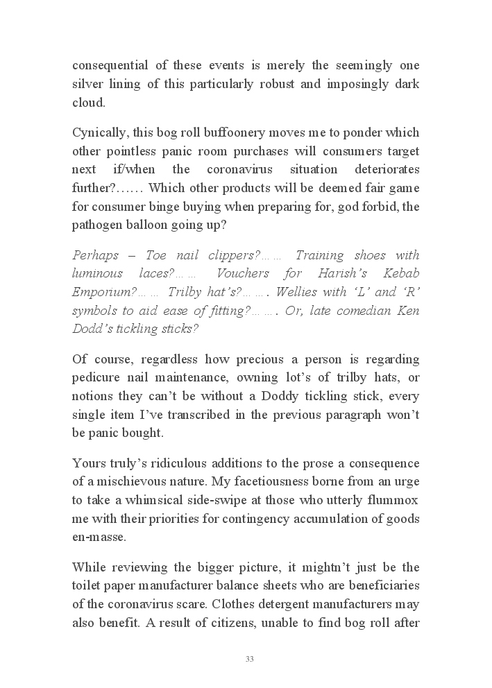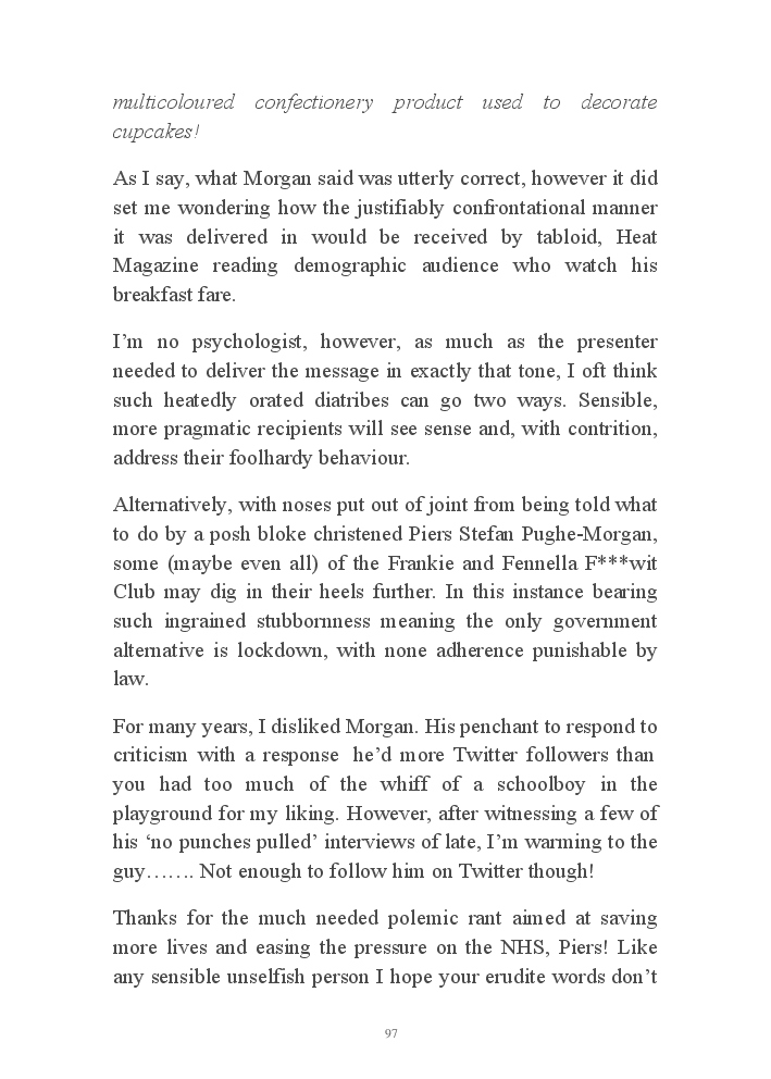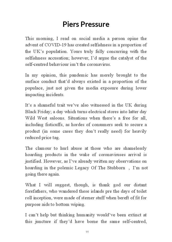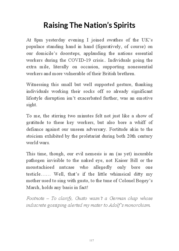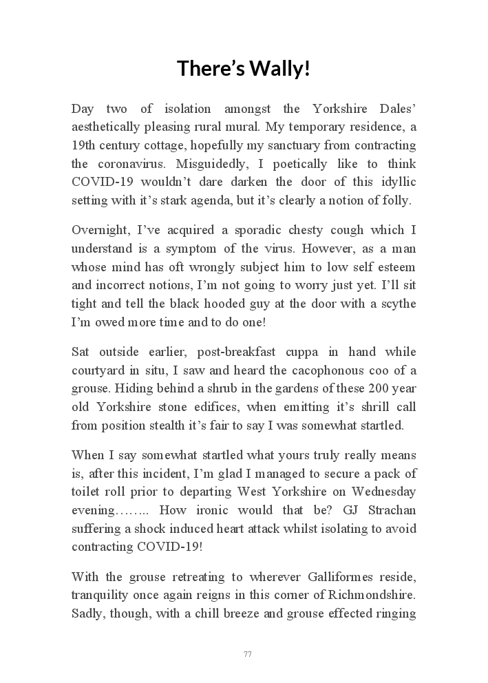 Corona Chronicles - Volume One affords exactly what it says on the tin, ie providing the authors daily journals penned in March 2020, a month where the pandemic COVID-19 took hold upon his UK homeland. This prose an amalgam of whimsy and the utter darkness at living with an indiscriminate pathogen steadfastly fixed on destroying live. Incidentally, that's the coronavirus he's referring to not his mother, who's house he now resides.
