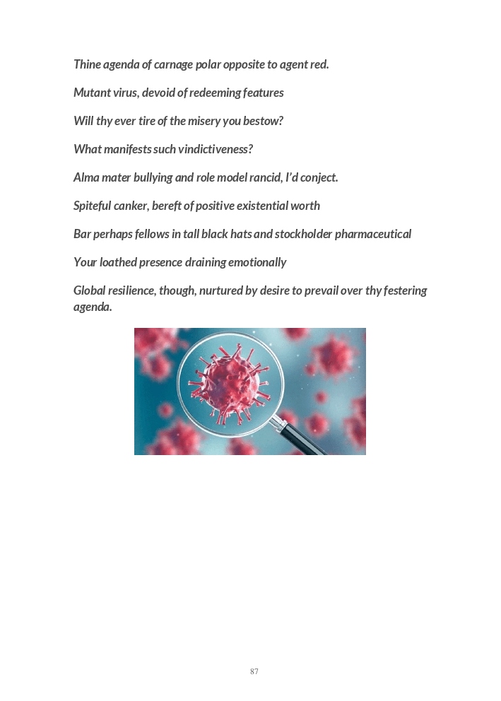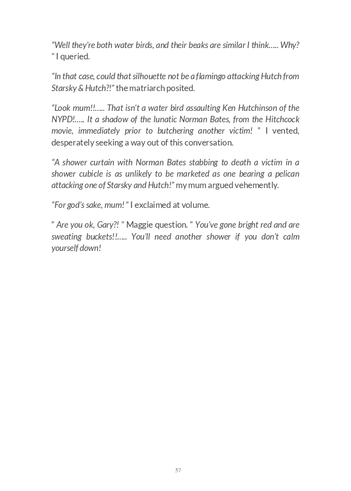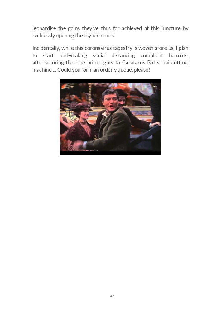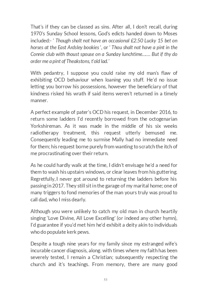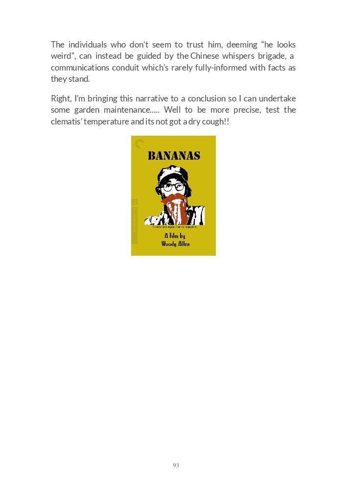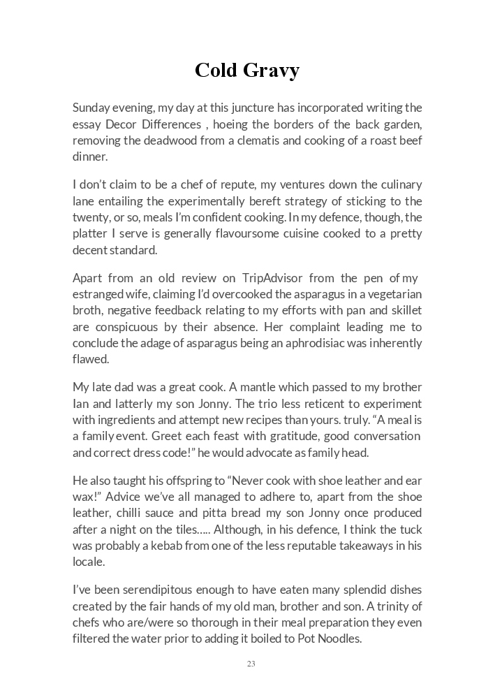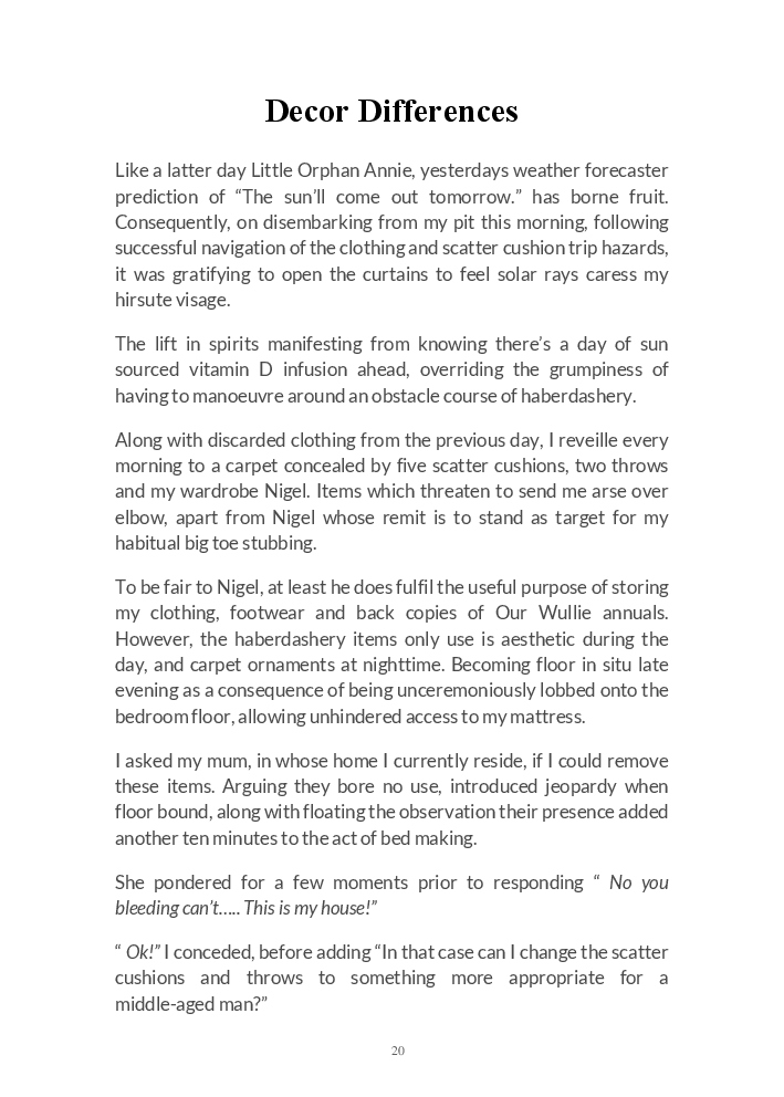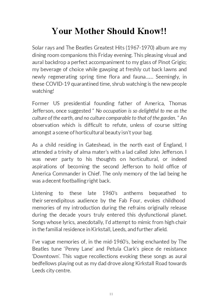 Corona Chronicles. - Vol 2 are the author's journals from April 2020 among a backdrop of COVID-19 induced lockdown. An amalgam of jocular and dark chronicles, they describe living through an era of pandemic, requiring adherence to social distancing edicts, along with governmental advocacies to practise hermitry. These narratives include spending a birthday in quarantine, the sad passing of two of his childhood footballing heroes and the angst from knowing he can't have a haircut for three months. Always endeavouring to take positives from situations, the author reflects on these surreal times by observing "Well at least I didn't have to buy a bloody round for a few months!"