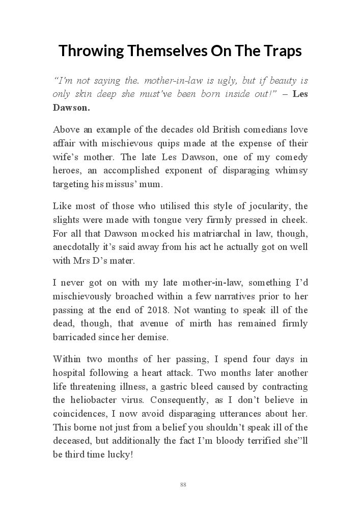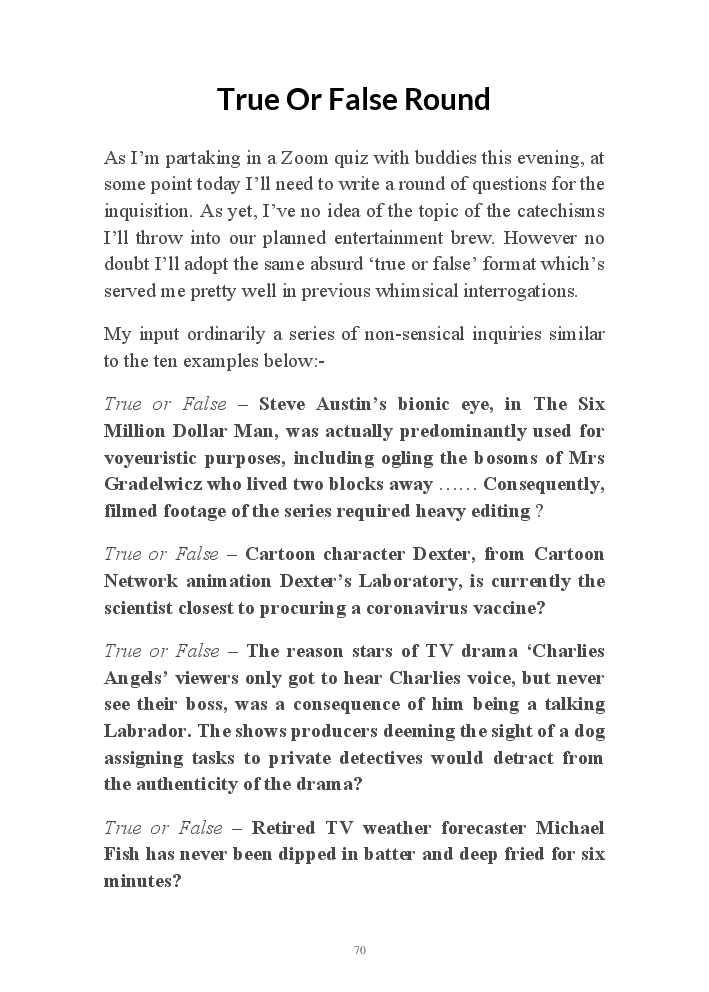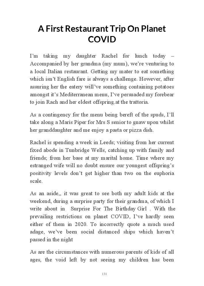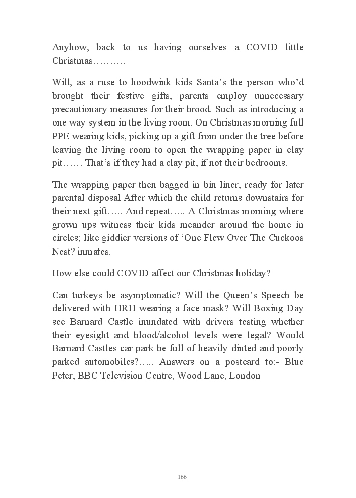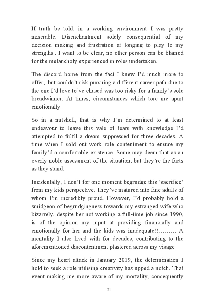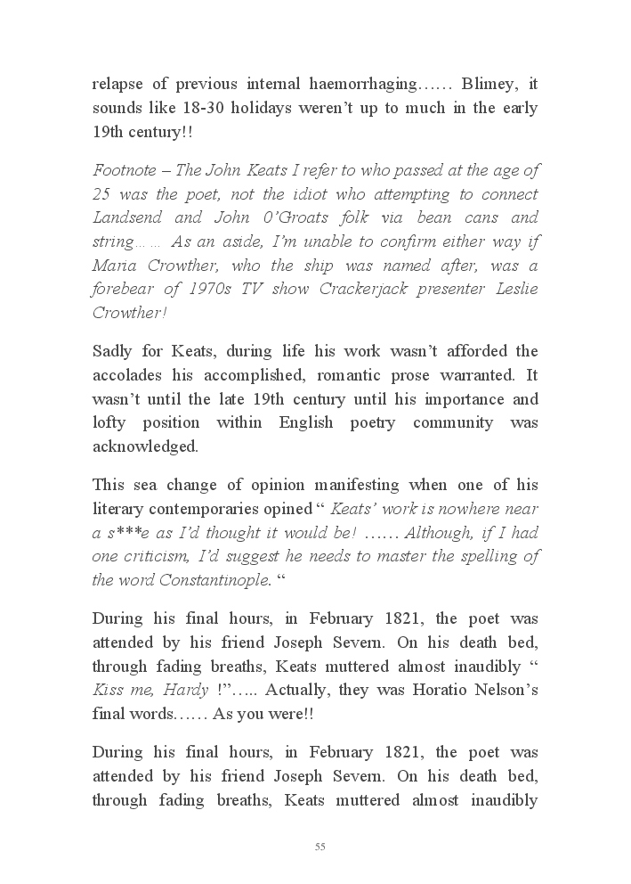 Summer's Dusk 2020 does exactly what it says on the tin...... Well the book cover, anyhow!. Within it's once chaste leaves, further tales of the authors existence in 2020 played out. This time as summer's watch hurtles to it's conclusion here on Planet COVID. The whimsical, partly fictional yarns cover a multitude of topics, such as snooker, the poet Keats, Oscar Wilde, along with tales of quiz nights. The tome also includes a selection of caricatures drawn by Gary Strachan during this period.