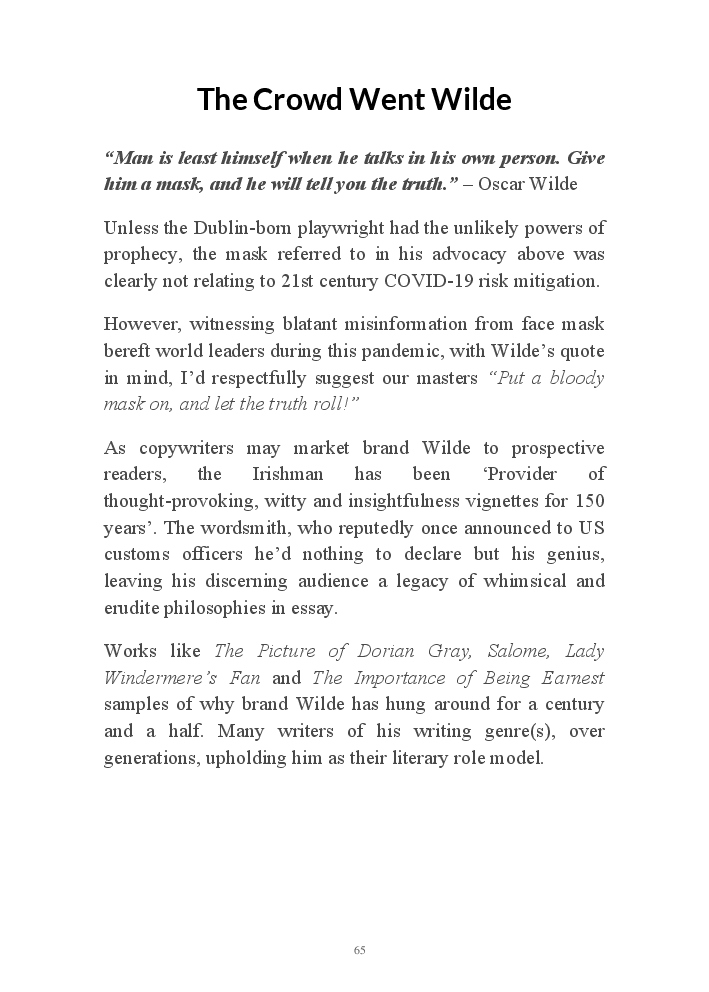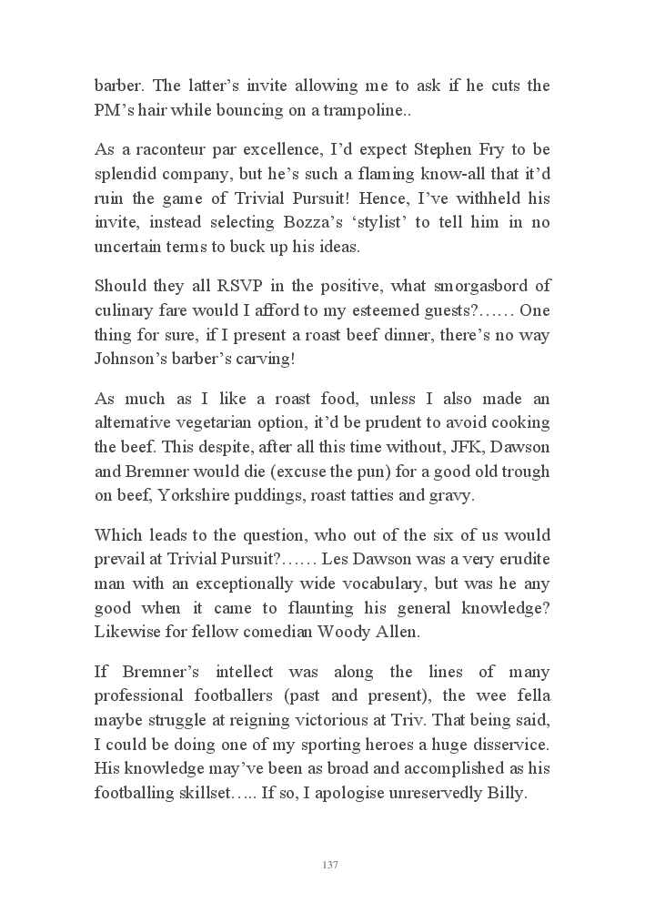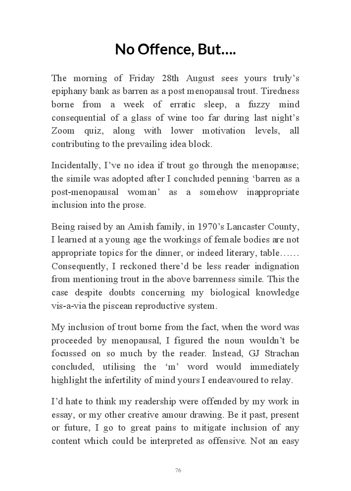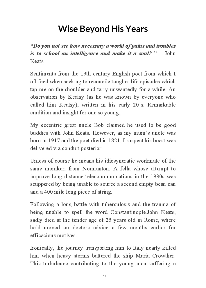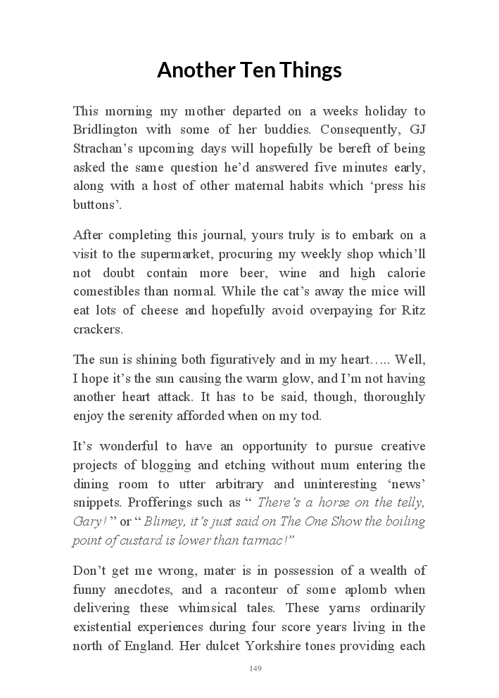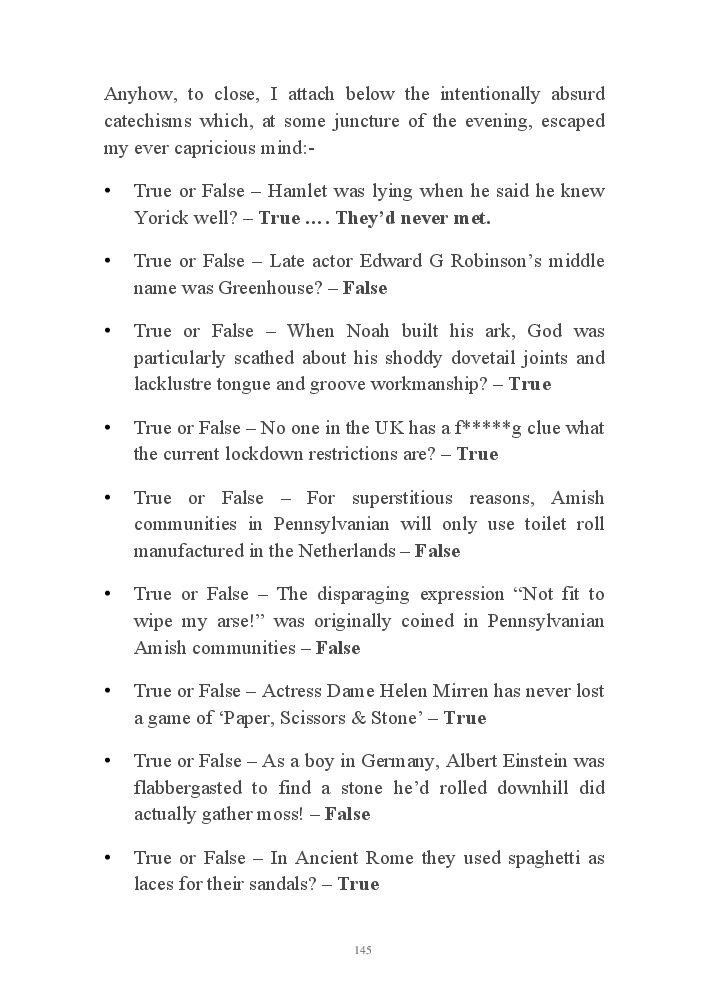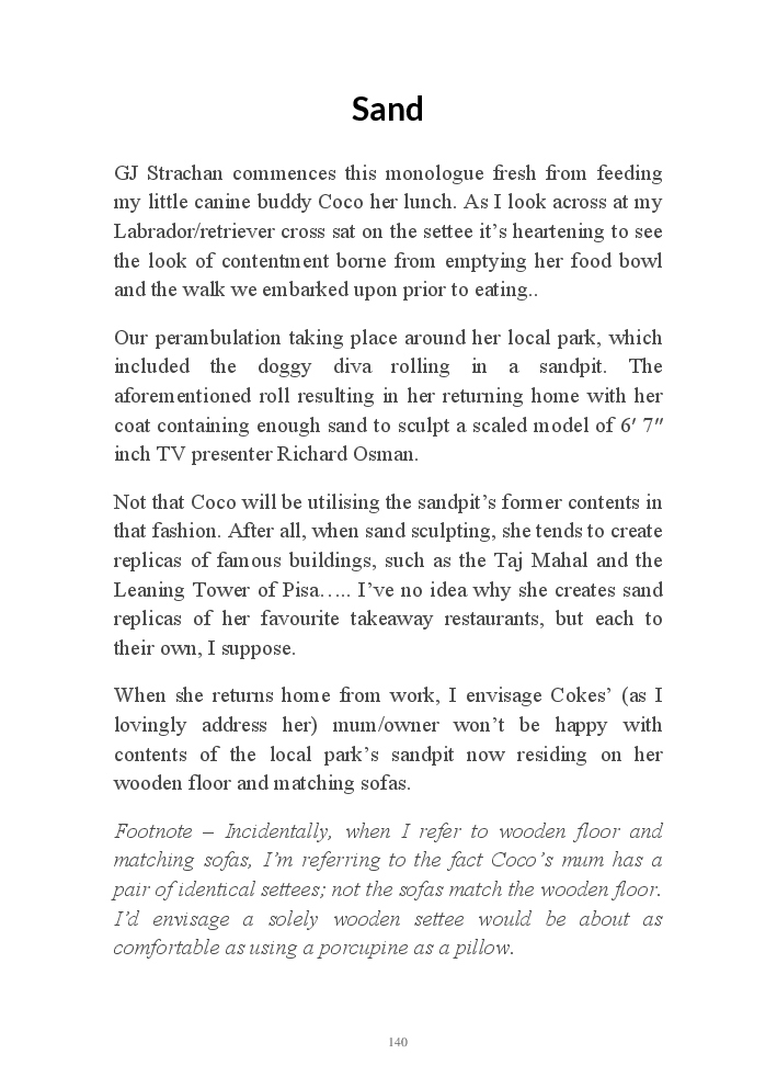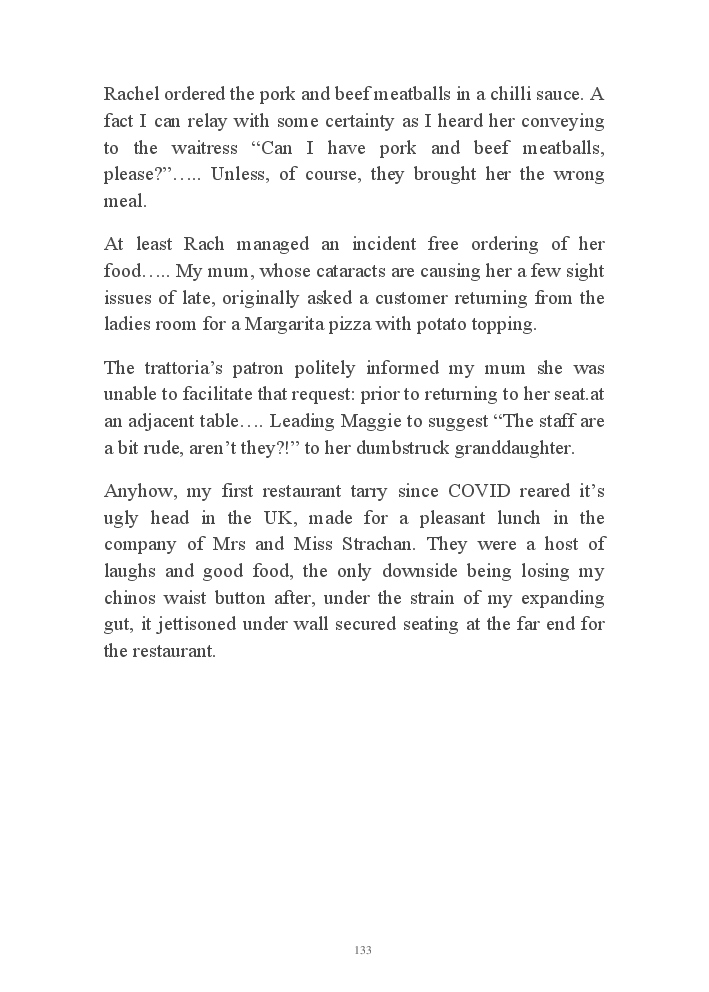 Summer's Dusk 2020 does exactly what it says on the tin...... Well the book cover, anyhow!. Within it's once chaste leaves, further tales of the authors existence in 2020 played out. This time as summer's watch hurtles to it's conclusion here on Planet COVID. The whimsical, partly fictional yarns cover a multitude of topics, such as snooker, the poet Keats, Oscar Wilde, along with tales of quiz nights. The tome also includes a selection of caricatures drawn by Gary Strachan during this period.