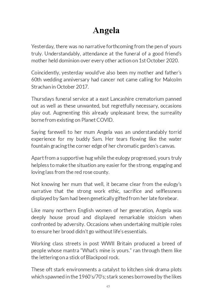 ‘We’re Doomed. Doomed I Tell Ye’ is a selection of the authors’s journals during the start of autumn in 2020. Amongst the topics flowing from Gary Strachan’s pen/pencil are COVID related tales, observations surrounding the US presidential campaign, along with a raft of caricatures of movie, tv and music stars. Additionally, he relays the strains of living at his mother’s home during lockdown, and how he’s now starting to understand how Norman Bates’ mind worked.