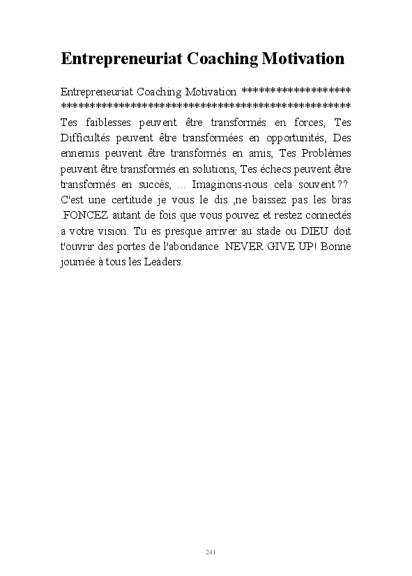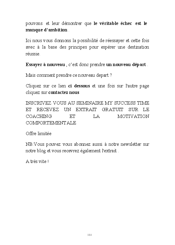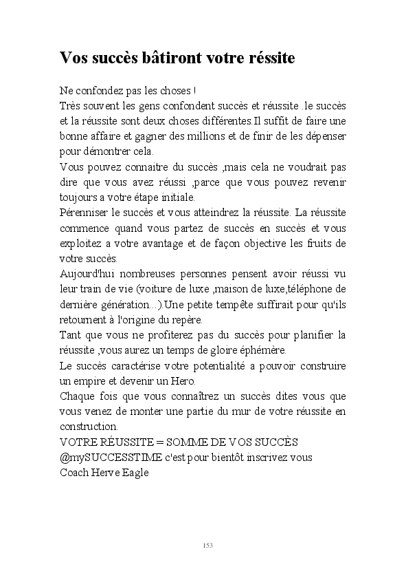 Réussir demande toujours un élan .Pour prendre votre élan ,il vous faut de la motivation . Pour avoir de la motivation il faut se débarrasser de certaines en chassant certaines pensées.