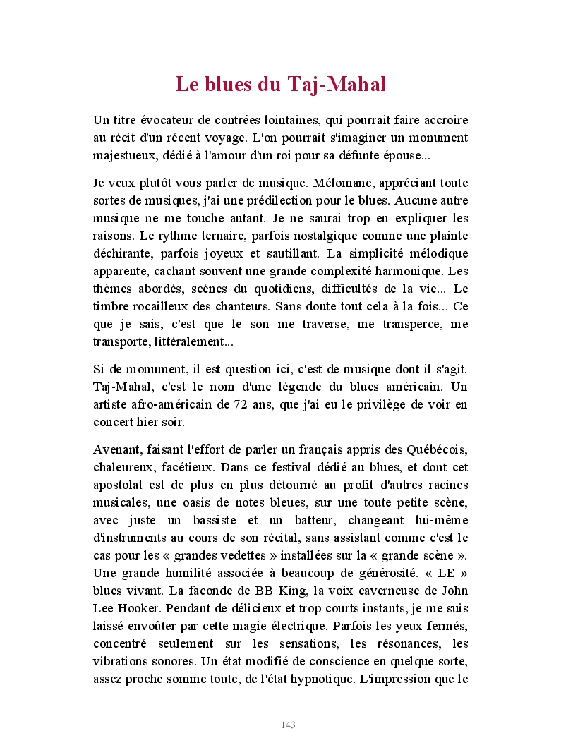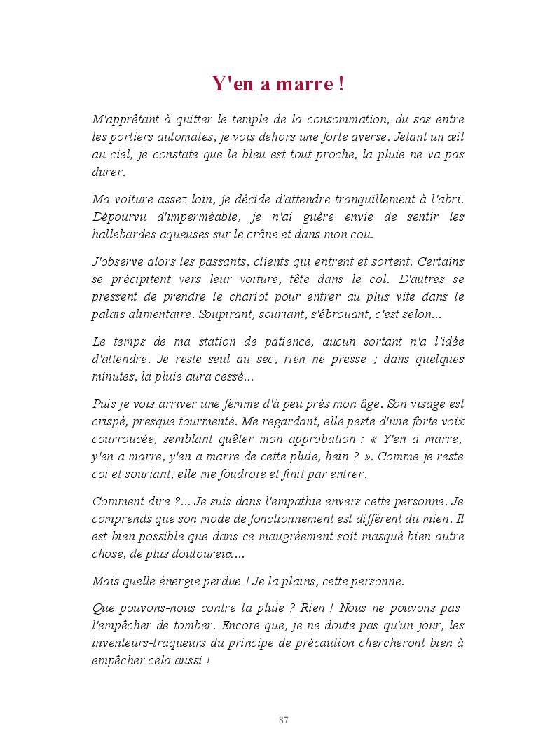 Ceci est le recueil des articles publiés sur le blog de Jean-Luc ROQUET. Ces textes sont autant consacrés au développement personnel et à la compréhension de soi qu'à l'expression des humeurs et ressentis de l'auteur à propos de la vie