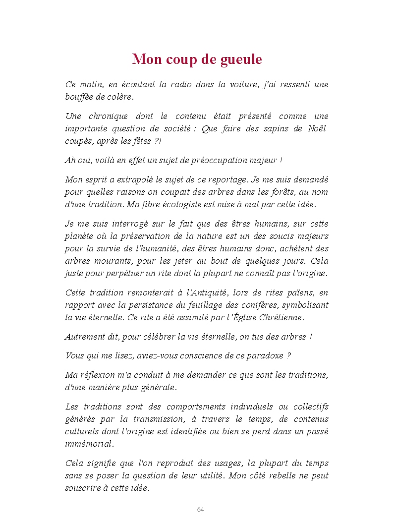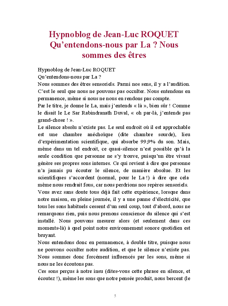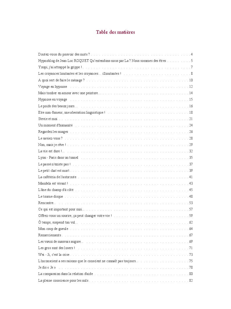 Ceci est le recueil des articles publiés sur le blog de Jean-Luc ROQUET. Ces textes sont autant consacrés au développement personnel et à la compréhension de soi qu'à l'expression des humeurs et ressentis de l'auteur à propos de la vie