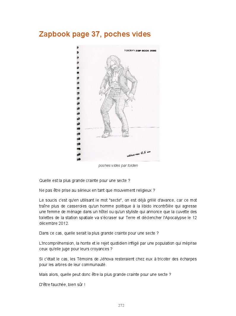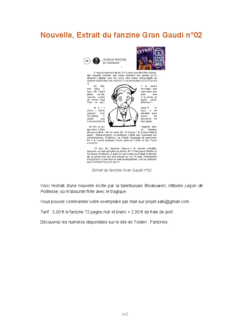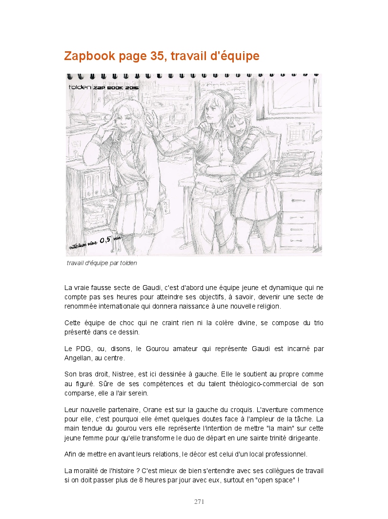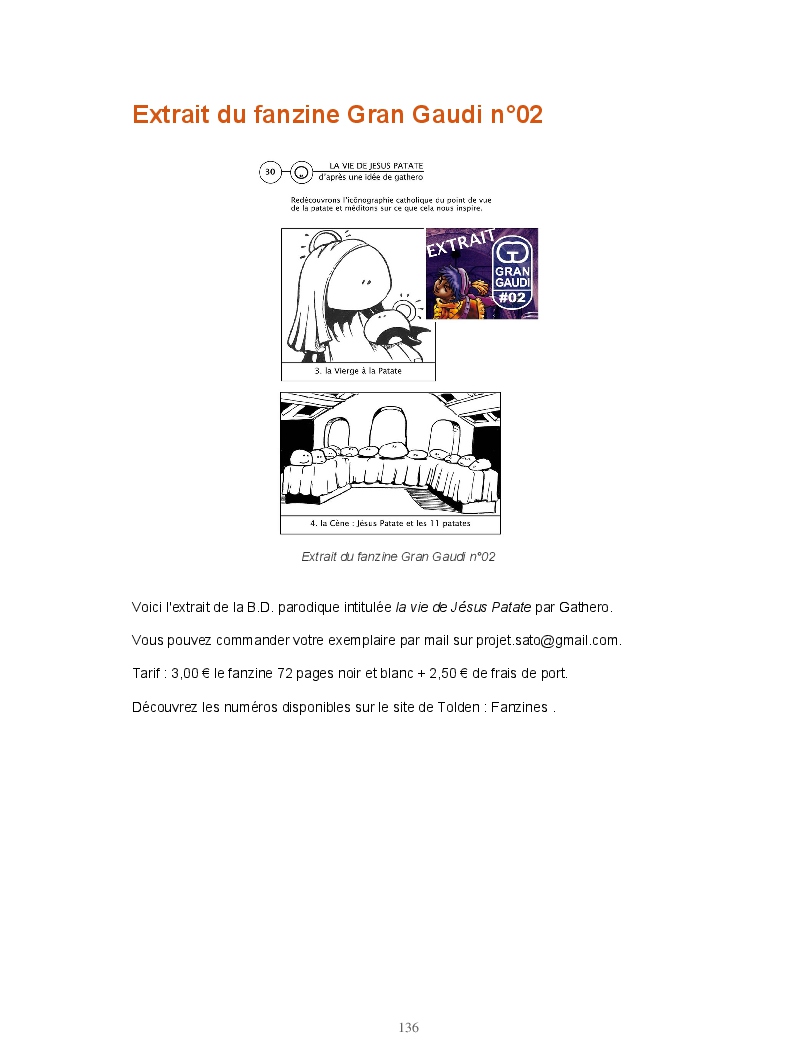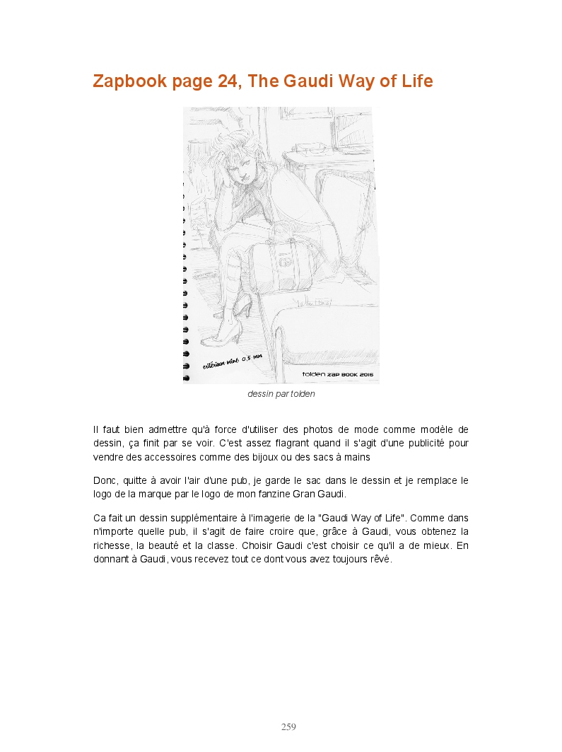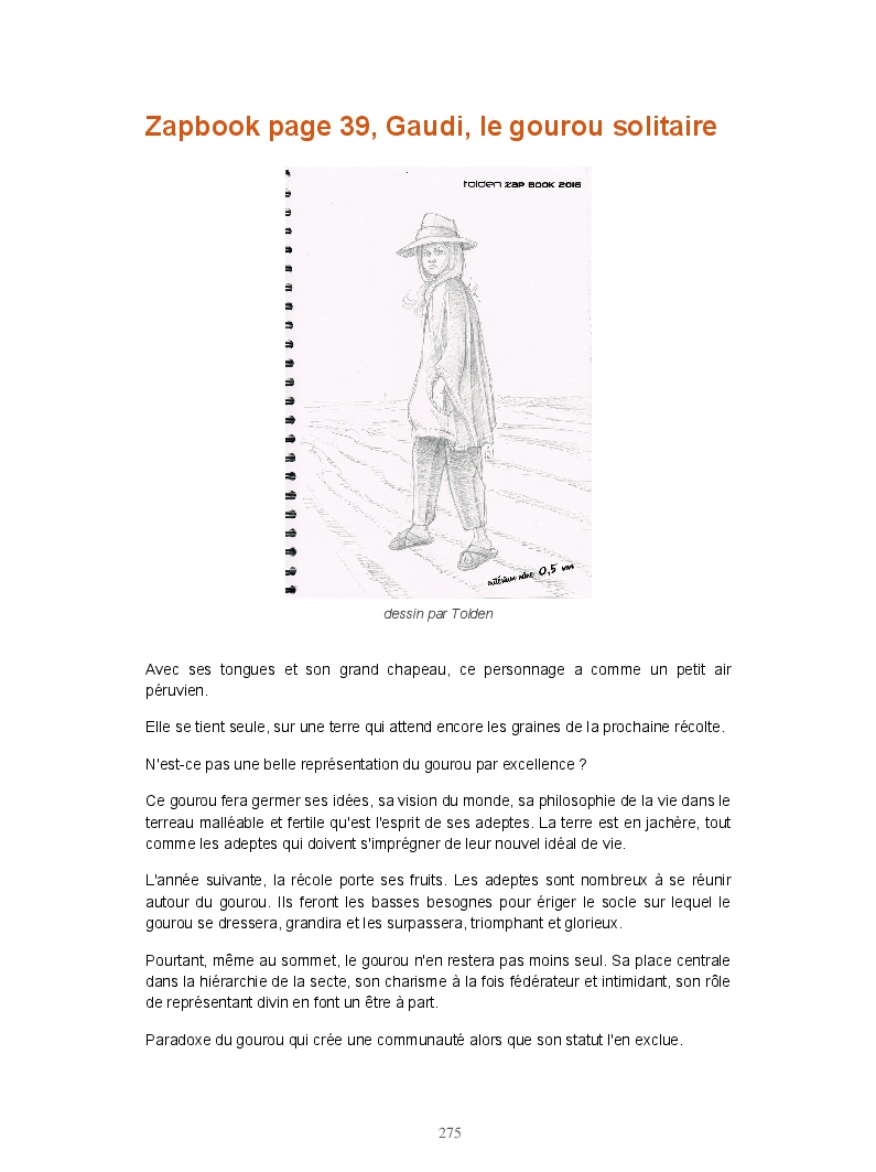 Ce livre réunit les publications du blog Gran Gaudi. Tout comme le fanzine, il parodie l'univers des sectes. Ce sont les dessins qui sont à l'honneur ici.
