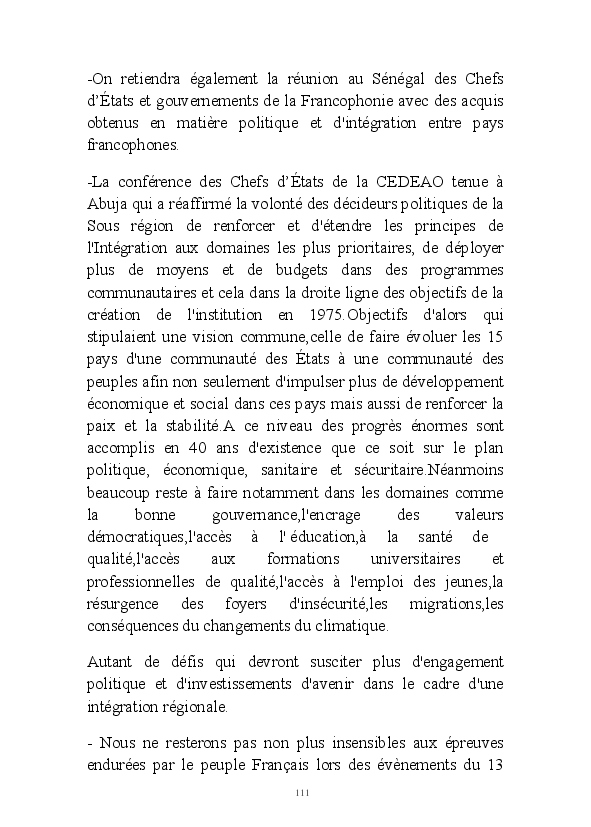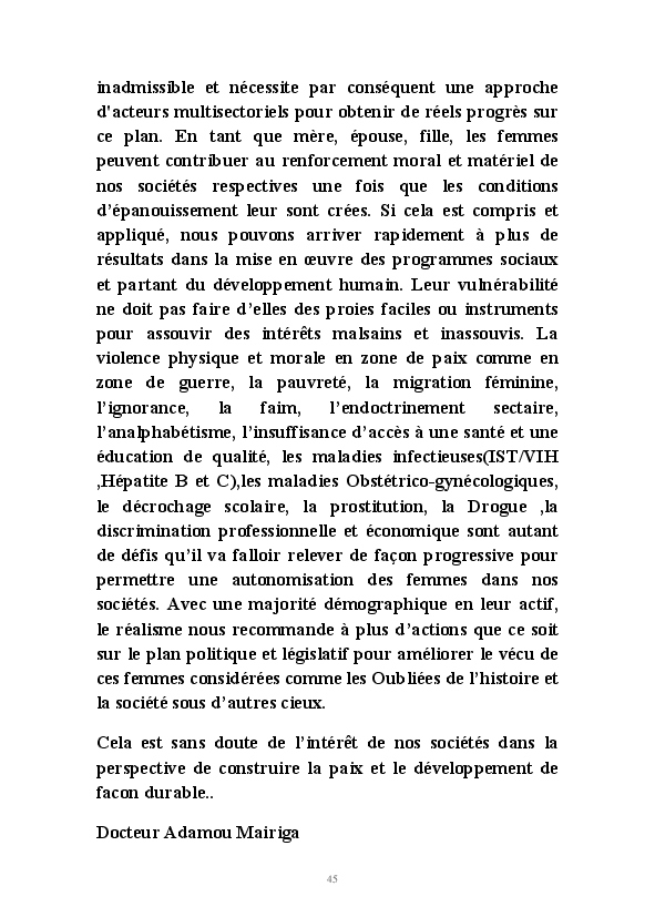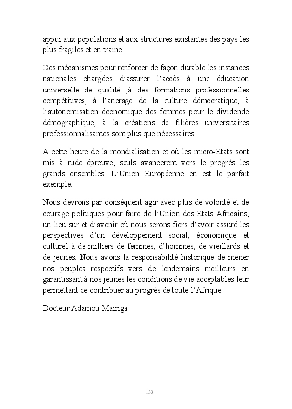Il s'agit d'un condense de réflexions, a la limite, stratégiques menées sur plusieurs sujets thématiques qui concernent ;'Éducation, la Sante-Medecine, la politique, l’Économie etc. Ce cadre de réflexions revêt une double portée, d'un cote a travers une participation a l'effort des réflexions menées dans le cadre du développement et de l'autre la portée réside dans le fait qu'il constitue une sorte d'instrument programme au service de décideurs politiques et autres dans le but de faciliter la mise en œuvre des politiques et programmes.