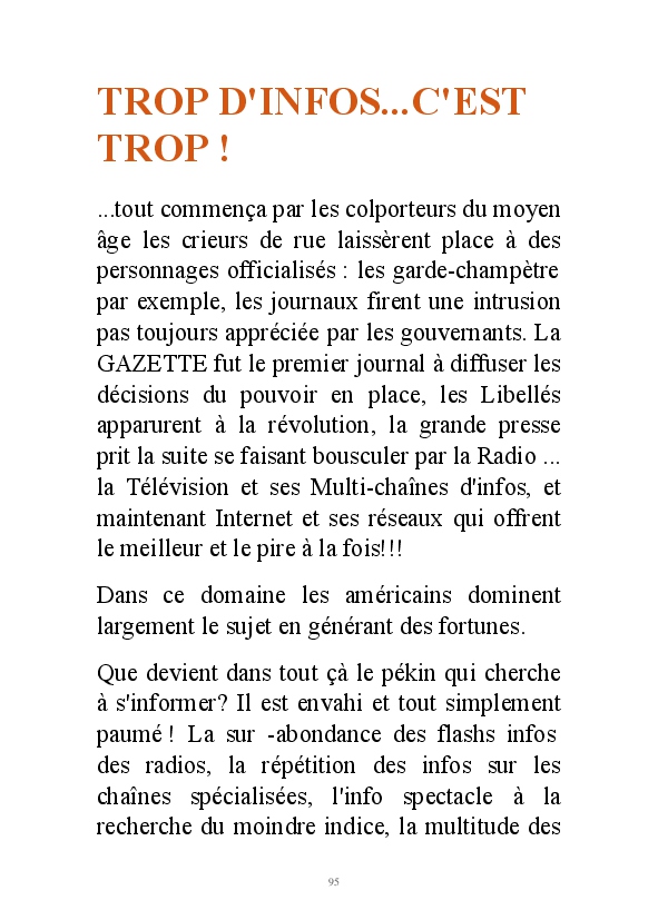 Un regard plus affuté encore depuis qu'il est à la retraite, c'est un nouveau chapitre qu'il vous propose de cette société moderne aux technologies étonnantes, qui n'attendent pas les novices en la matière. Une société ou la communication atteint son apogée en réduisant la relation humaine comme jamais !