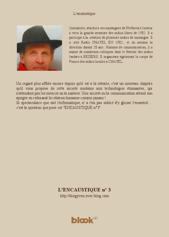 L'encaustique made the blook of their their blog Overblog ! Support their creativity by buying their blook or create your own now on BlookUp!