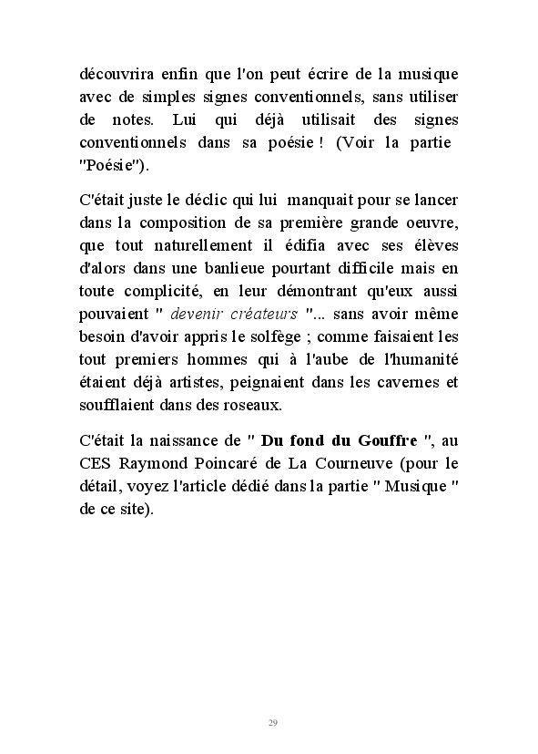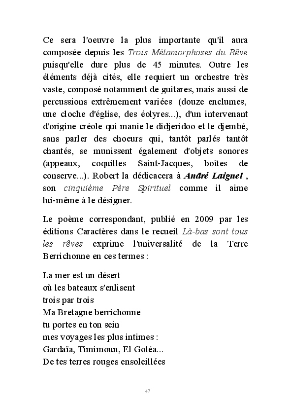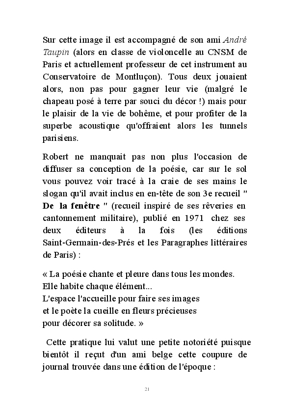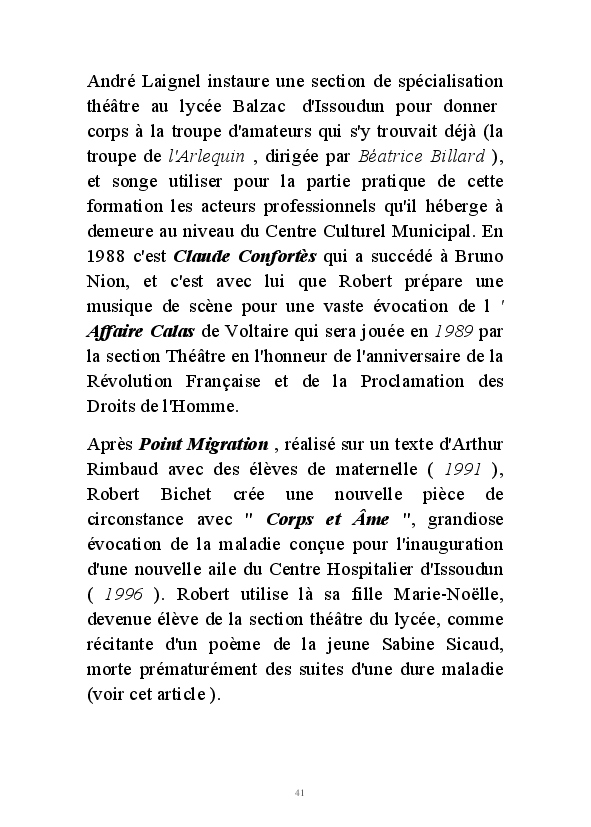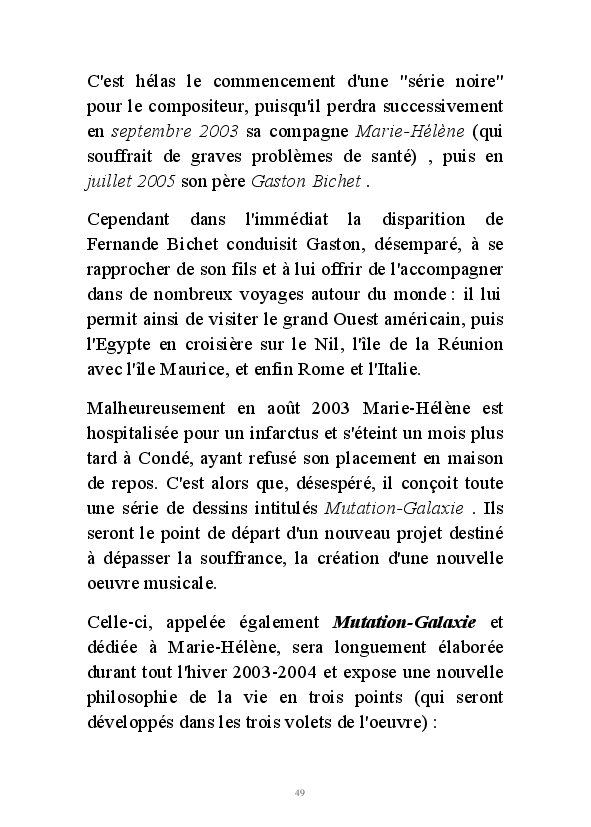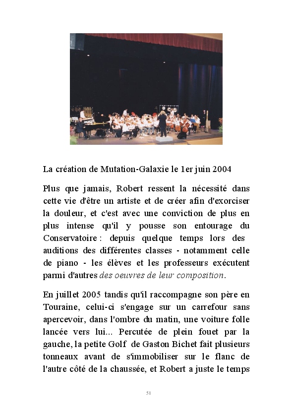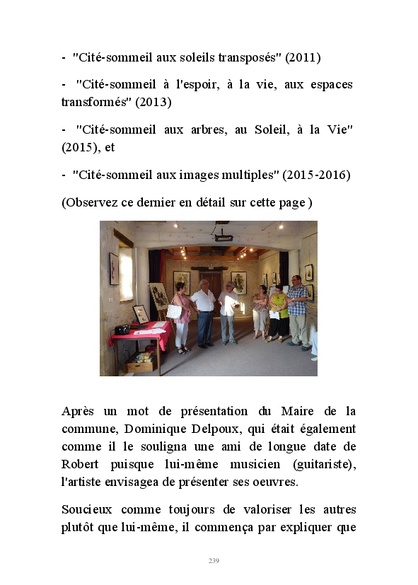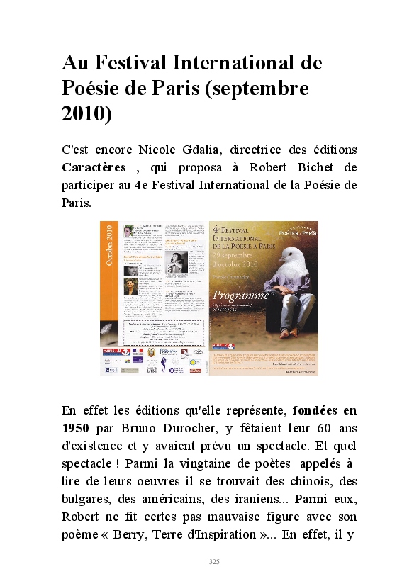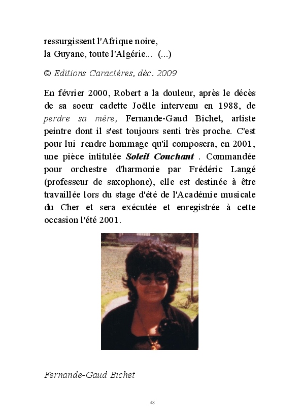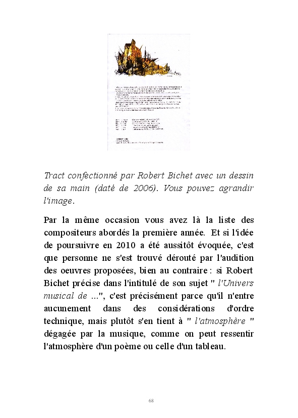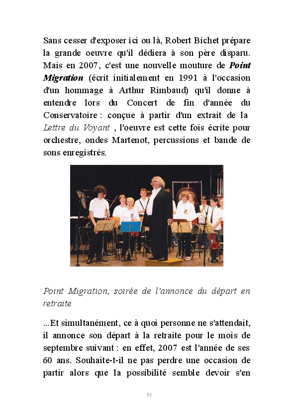 " L'Art vient d'ailleurs, il est sacré. L'artiste n'est qu'un transmetteur capable de s'émerveiller. Quels que soient sa race, son sexe, son âge, sa condition sociale, tout être humain a la possibilité de dire ou de penser : "C'est beau..." C'est à cet instant qu'il devient poète. S'il s'autorise à créer envers et contre tous, il devient alors artiste, nourri par l'énergie d'une force intérieure qui le dépasse et qui le guide." Robert Bichet.