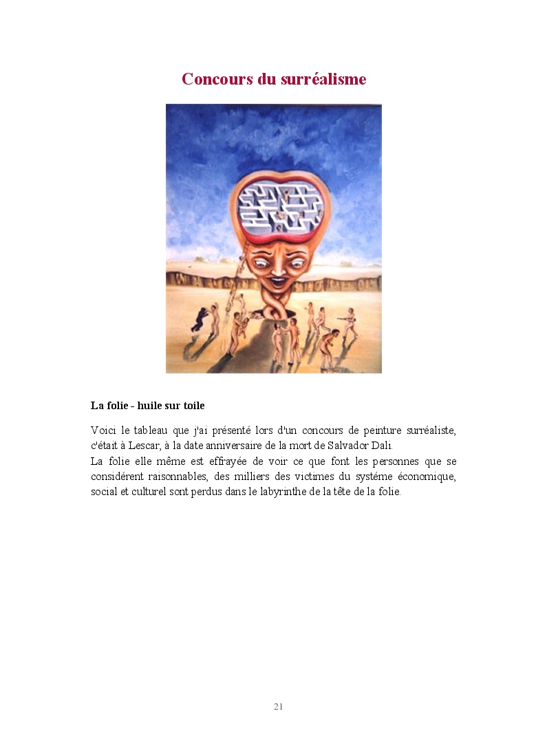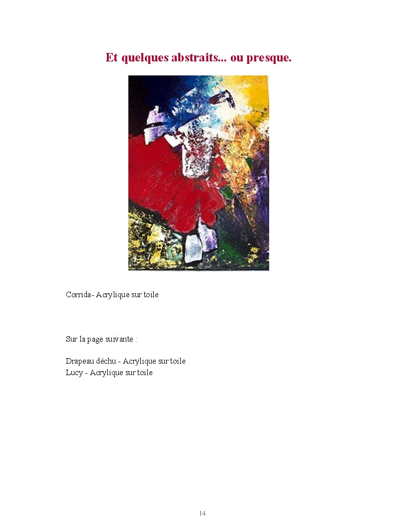 Quelques centaines de dessins et toiles ont été distribuées ici et là, en France, au Chili, aux Etats Unis, des moments de vie, parfois de la joie d'autres de la tristesse, de l'émotion et de la révolte, de l'amour ou de la colère,imprimés par ma main, sur un morceau de papier, une serviette, un morceau de cuir.