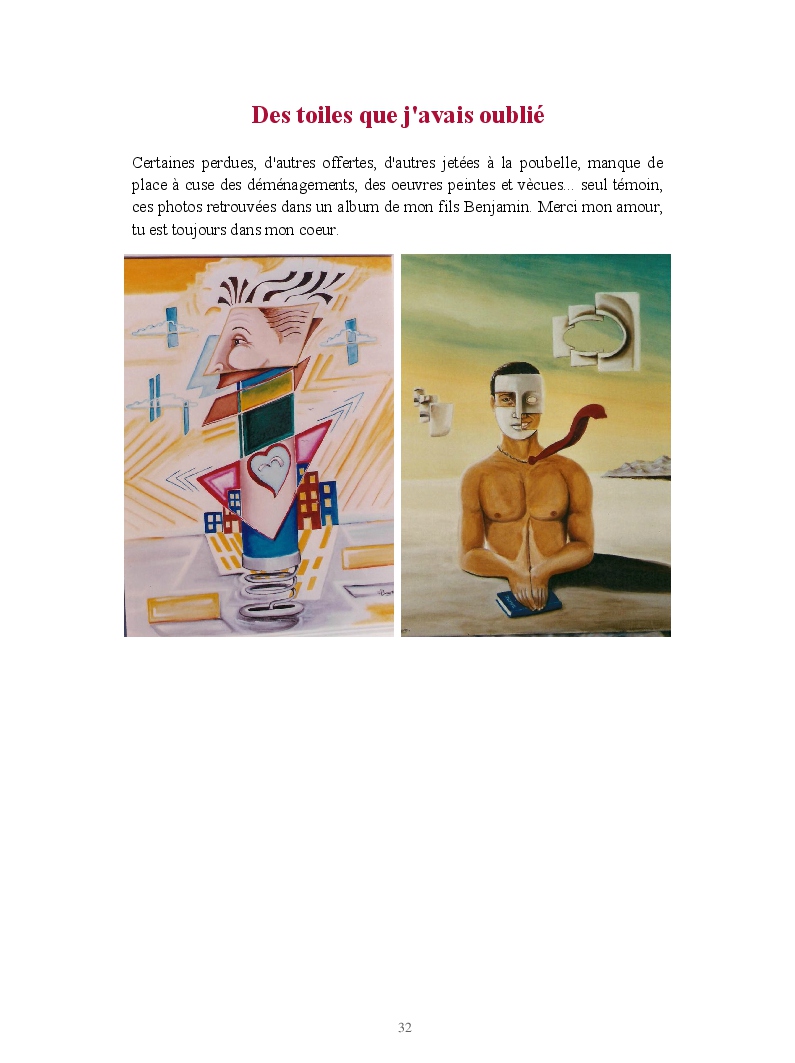 Quelques centaines de dessins et toiles ont été distribuées ici et là, en France, au Chili, aux Etats Unis, des moments de vie, parfois de la joie d'autres de la tristesse, de l'émotion et de la révolte, de l'amour ou de la colère,imprimés par ma main, sur un morceau de papier, une serviette, un morceau de cuir.