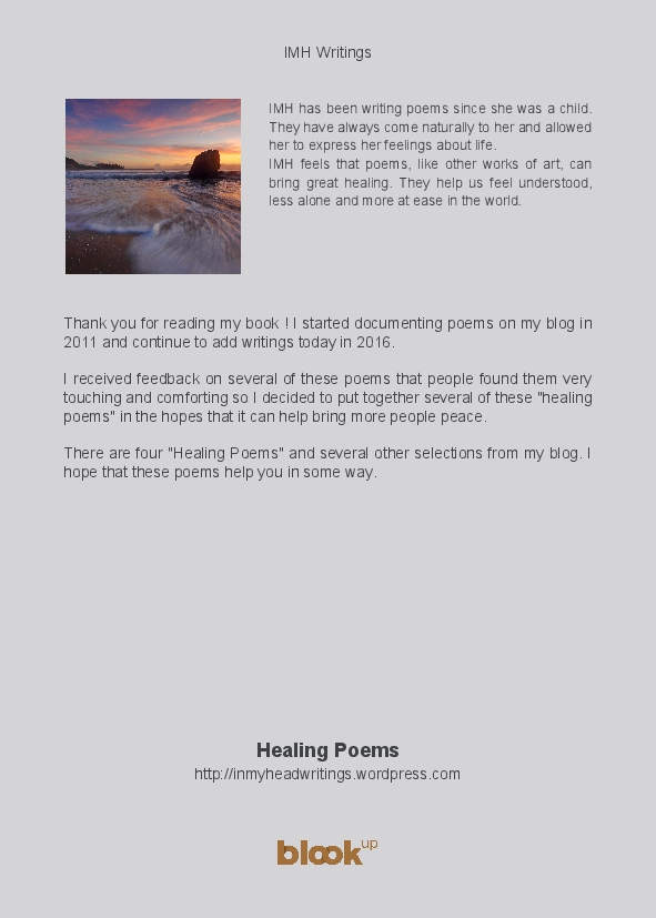 I received feedback on several of these poems that people found them very touching and comforting so I decided to put together several of these "healing poems" in the hopes that it can help bring more people peace.