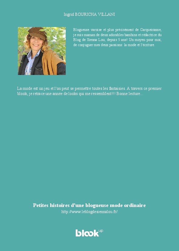 Ingrid BOURICHA VILLANI made the blook of their their blog Blogger/Blogspot ! Support their creativity by buying their blook or create your own now on BlookUp!