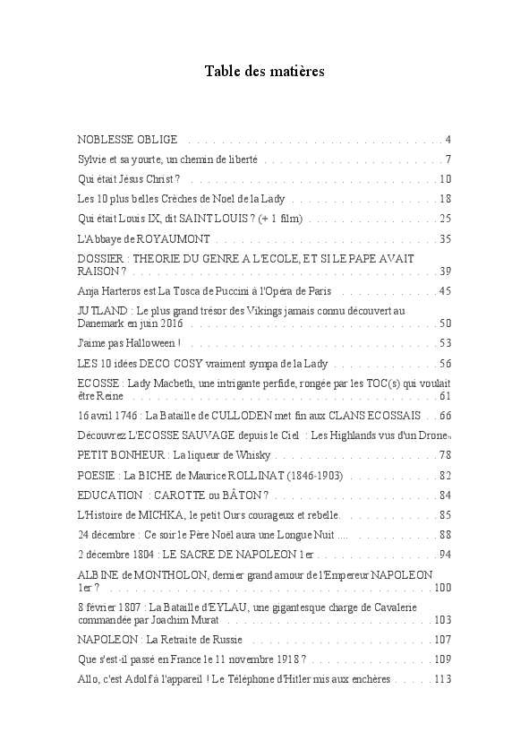 Un petit voyage à travers l'Europe, la Chrétienté et un trésor Viking, l'Ecosse celte, la beauté de la France et son histoire, en passant par Saint-Louis et Napoléon 1er, sans oublier l'Italie et Puccini, et la Russie de Vladimir Poutine !