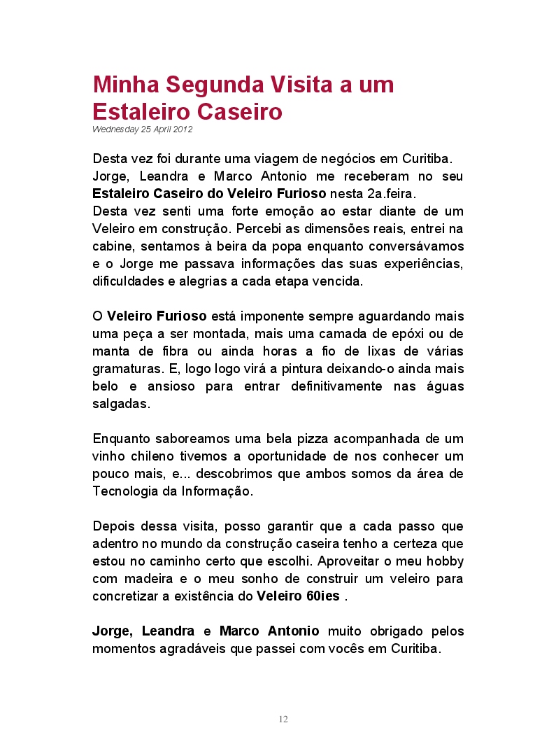... a história de um sonho que renascia em 2012