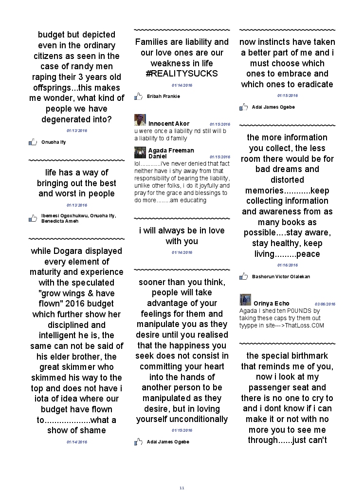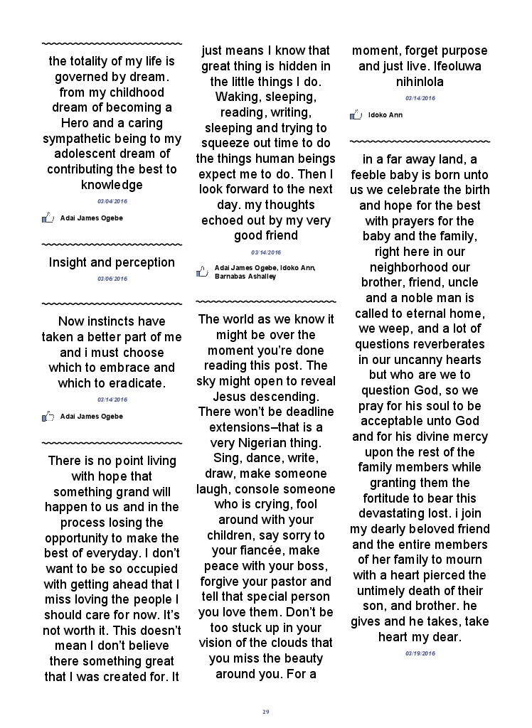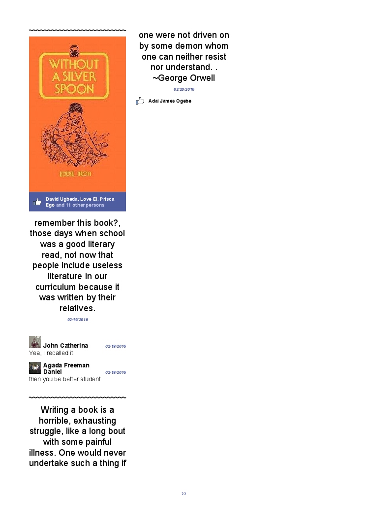Agada Freeman Daniel hat das Buch seinen Facebook-Account erstellt! Unterstütze seine Kreativität, indem du seinen Blook kaufst oder erstelle jetzt deinen eigenen auf BlookUp!