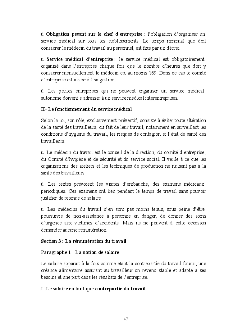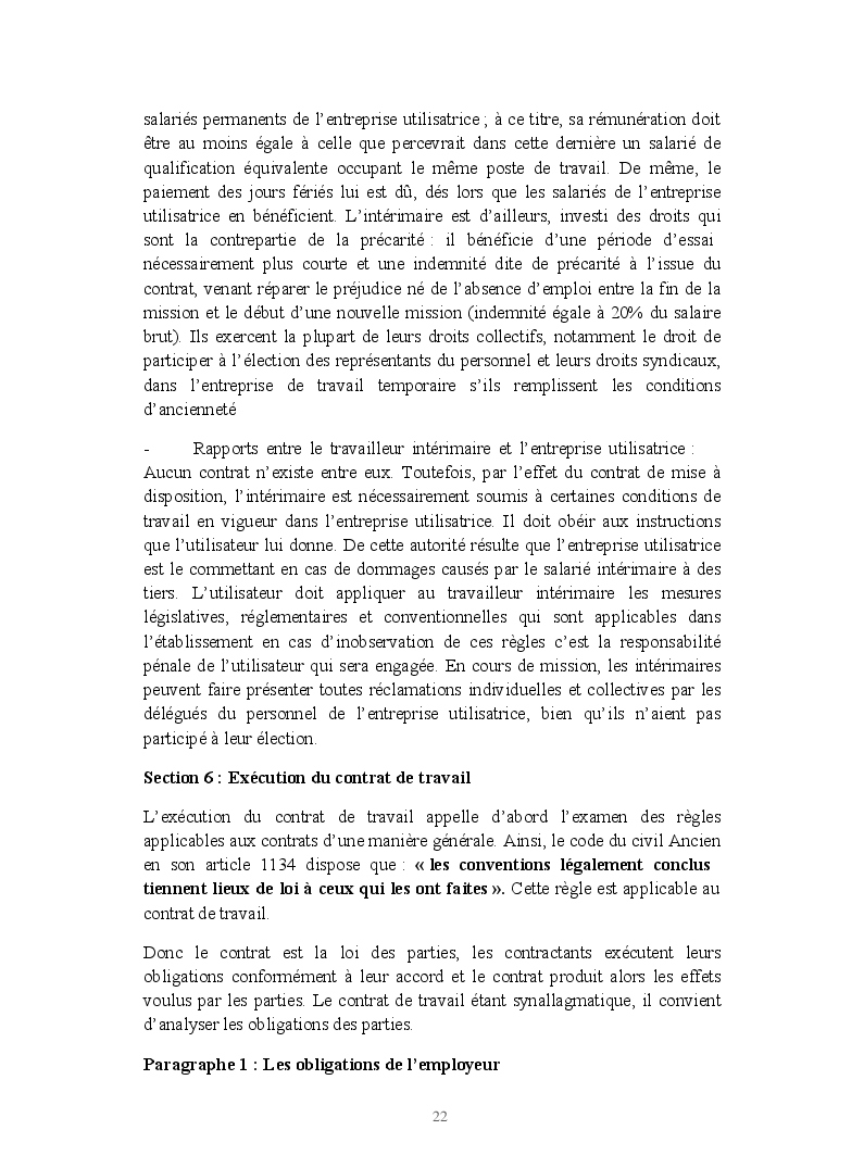 Le droit du travail réglemente les rapports individuels mais aussi les rapports collectifs du travail. Les rapports individuels sont celles qui naissent du contrat de travail conclu entre employeur et salarié : la conclusion, l’exécution et la rupture du contrat de travail. Le droit du travail encadre notamment la formation, l’exécution et la rupture du contrat de travail. Il garanti également le respect des libertés syndicales et des normes de sécurité au travail. La représentation collective fonctionne doublement dans une entreprise.