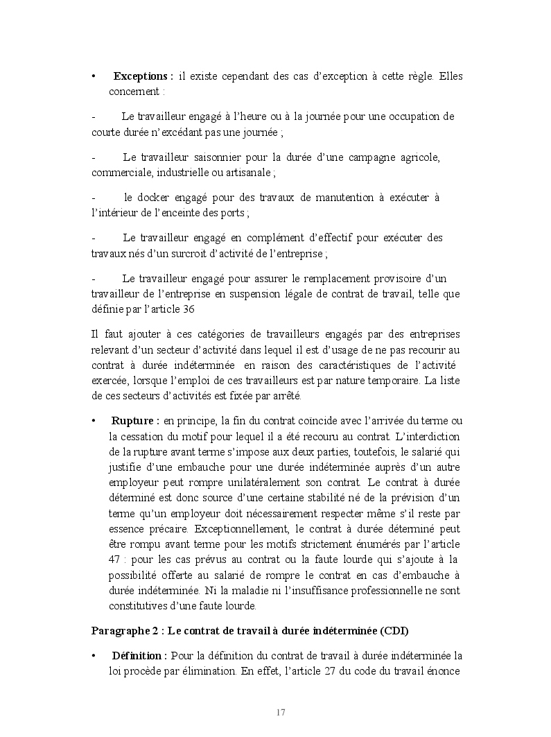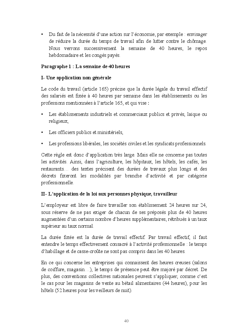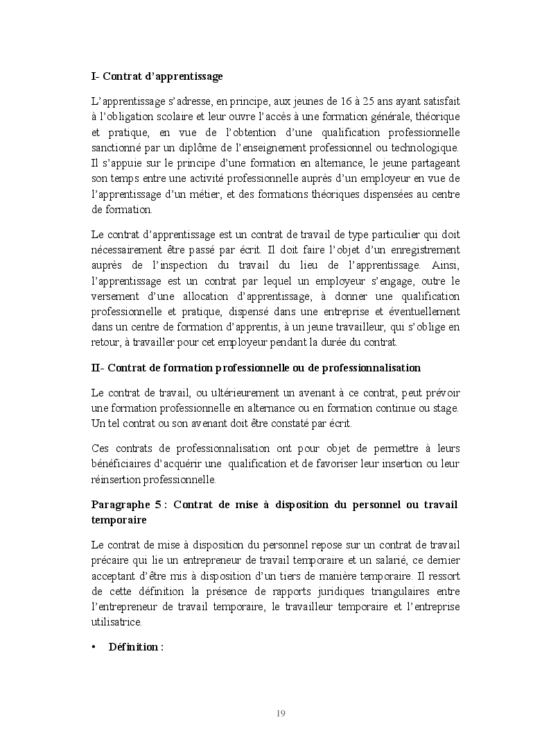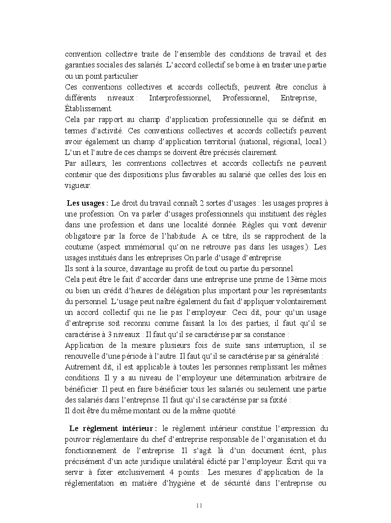 Le droit du travail réglemente les rapports individuels mais aussi les rapports collectifs du travail. Les rapports individuels sont celles qui naissent du contrat de travail conclu entre employeur et salarié : la conclusion, l’exécution et la rupture du contrat de travail. Le droit du travail encadre notamment la formation, l’exécution et la rupture du contrat de travail. Il garanti également le respect des libertés syndicales et des normes de sécurité au travail. La représentation collective fonctionne doublement dans une entreprise.