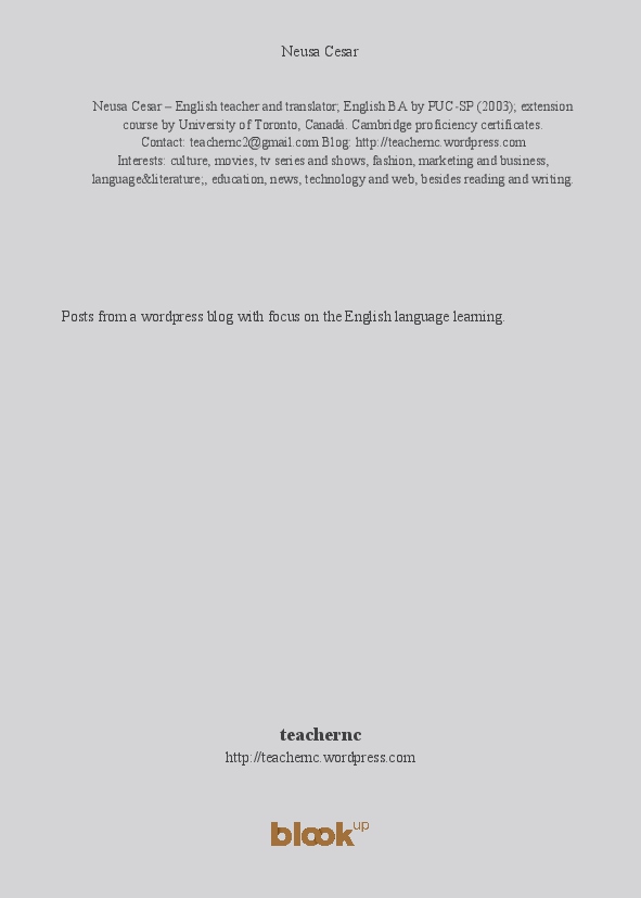 Neusa Cesar made the blook of their their blog Wordpress ! Support their creativity by buying their blook or create your own now on BlookUp!