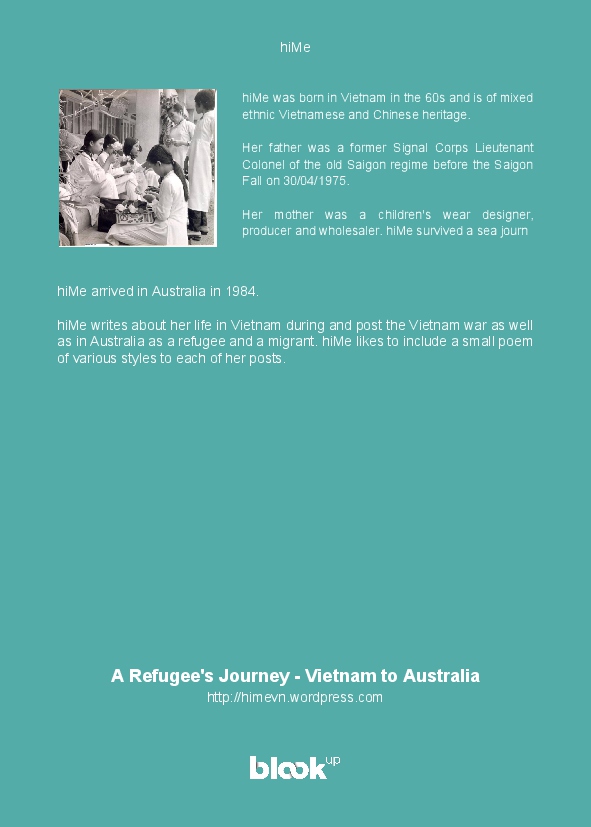 hiMe writes about her life in Vietnam during and post the Vietnam war as well as in Australia as a refugee and a migrant. hiMe likes to include a small poem of various styles to each of her posts.