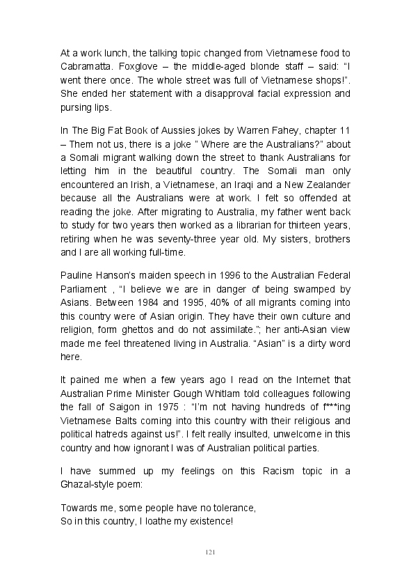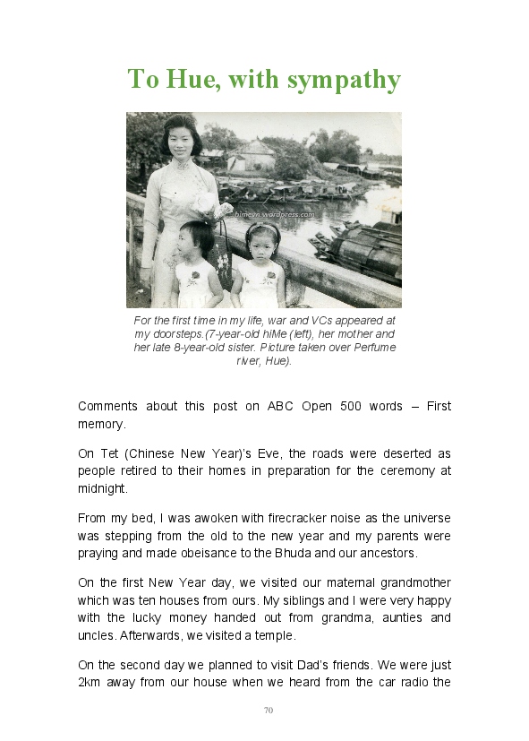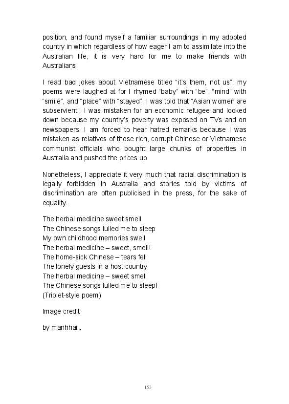 hiMe writes about her life in Vietnam during and post the Vietnam war as well as in Australia as a refugee and a migrant. hiMe likes to include a small poem of various styles to each of her posts.