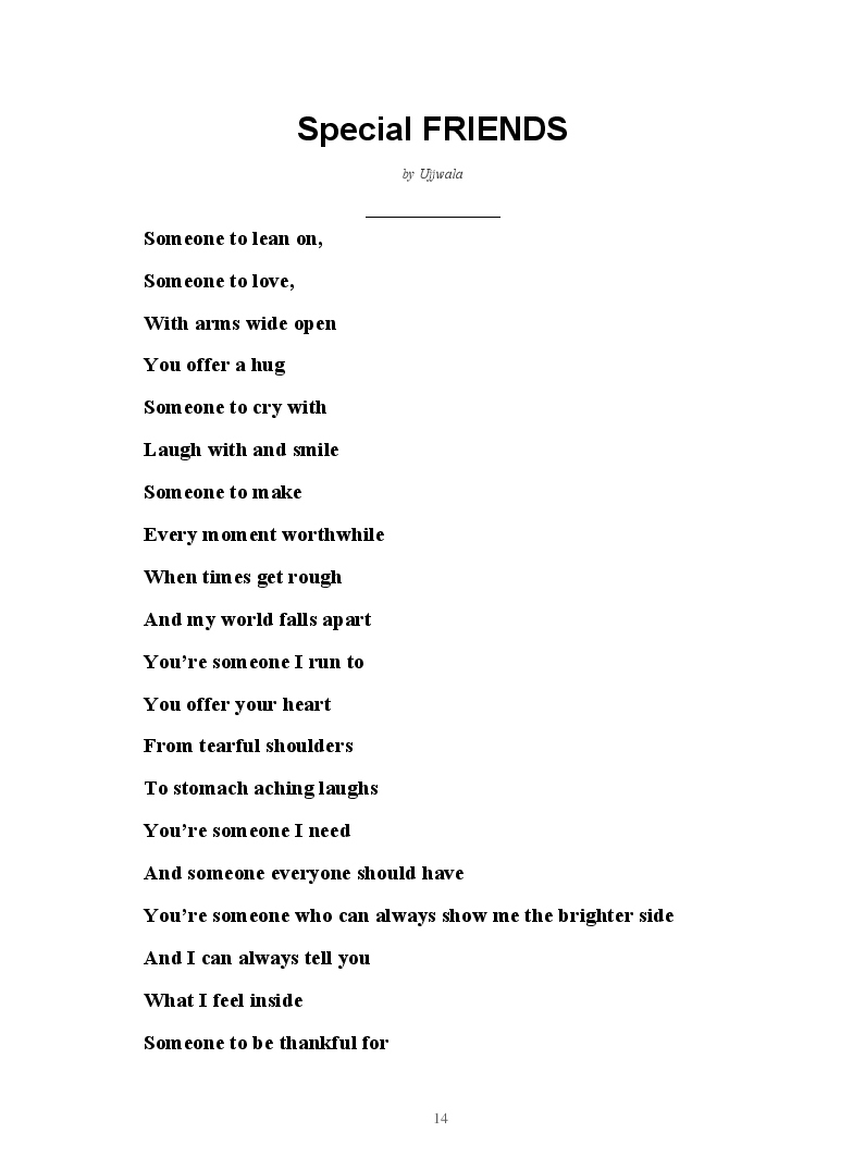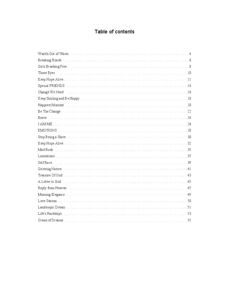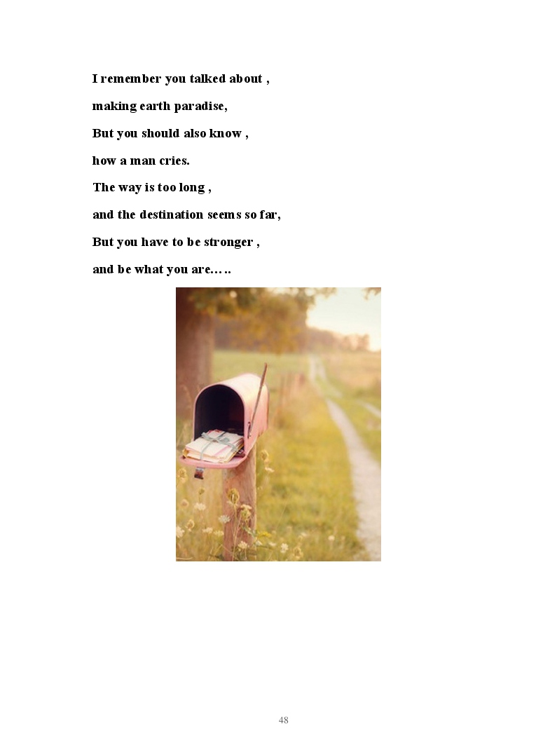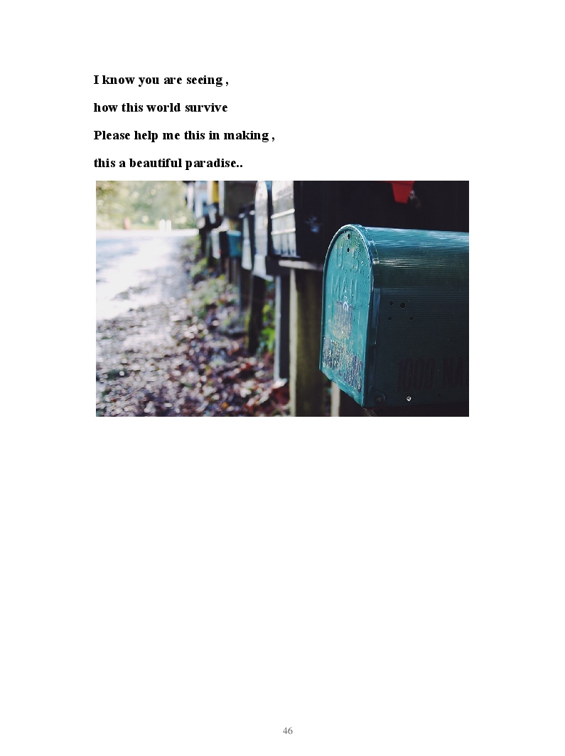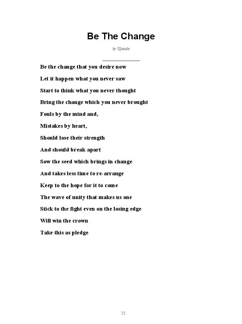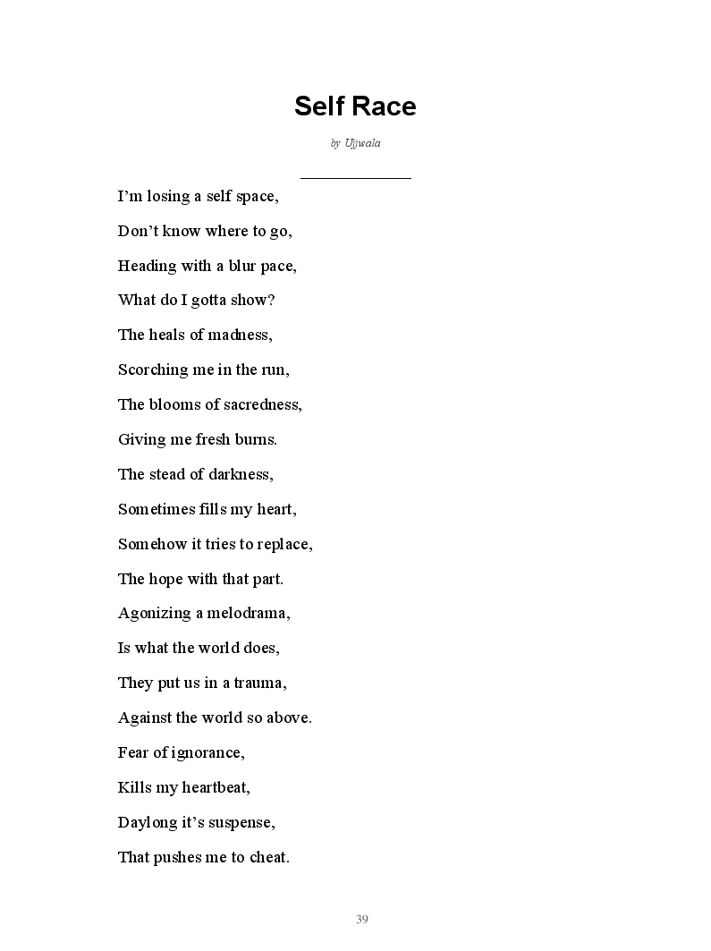 Poetry is one's feelings in a few lines. Some of the poetries in this book depict a normal person's feeling. One can find themselves in such situations and they can feel what goes on in the poem is a real life deal.