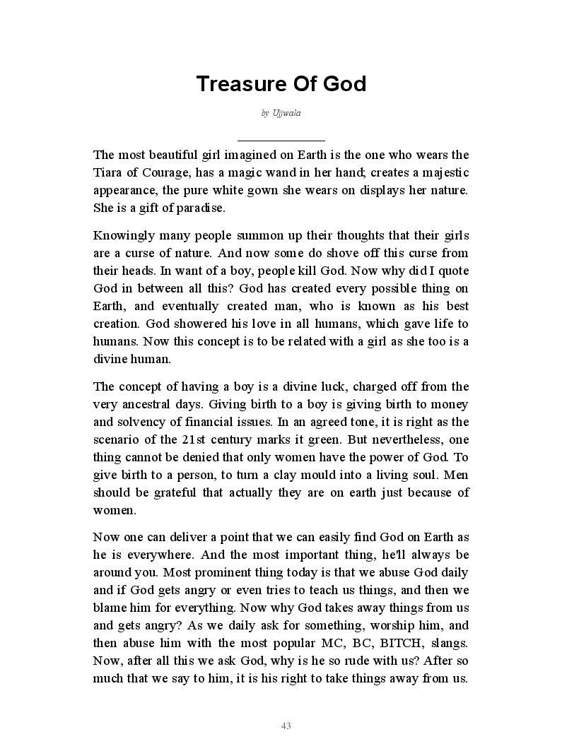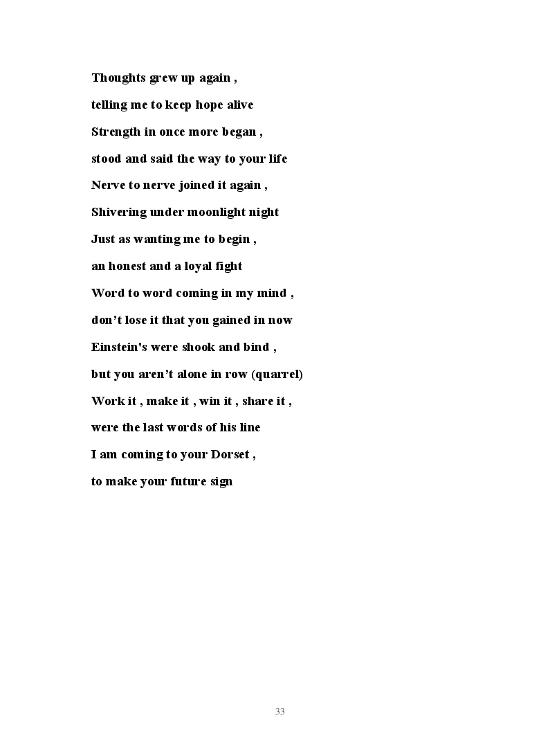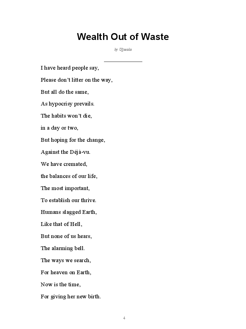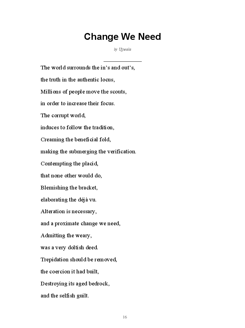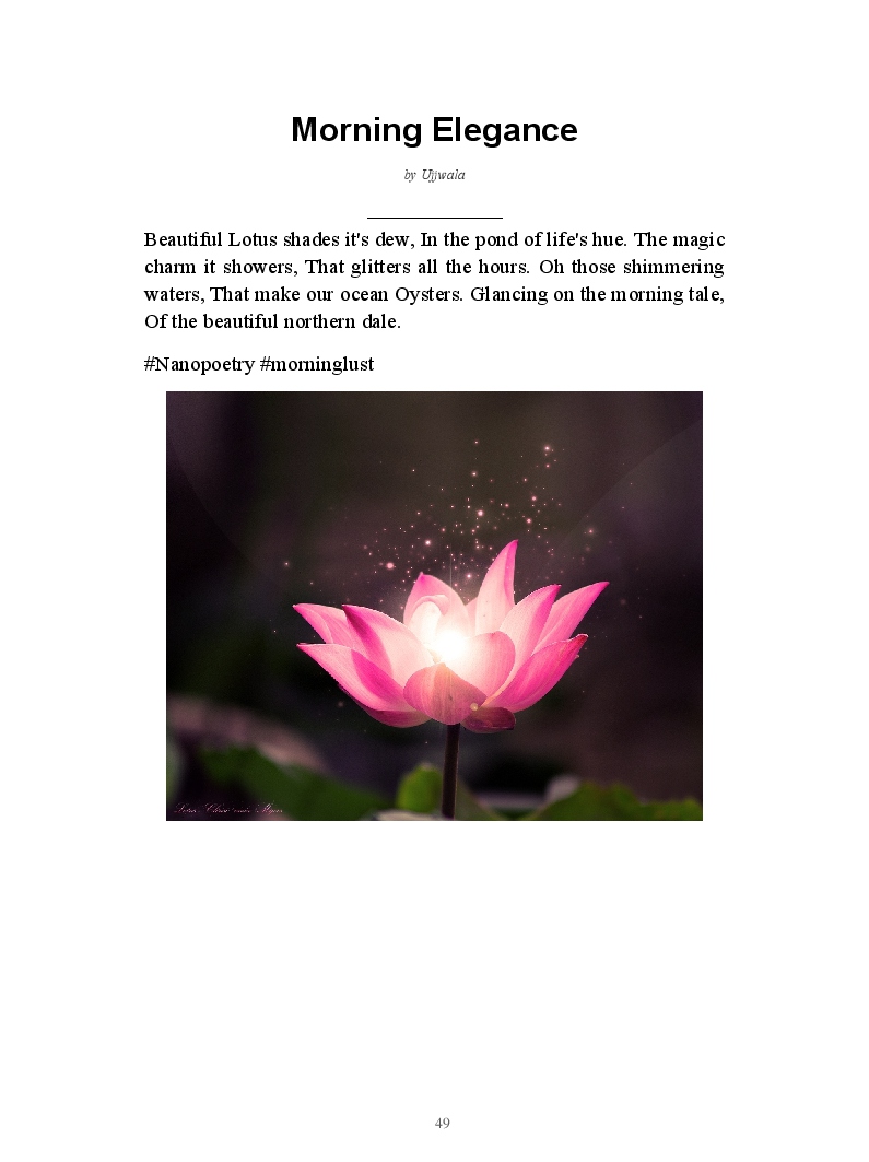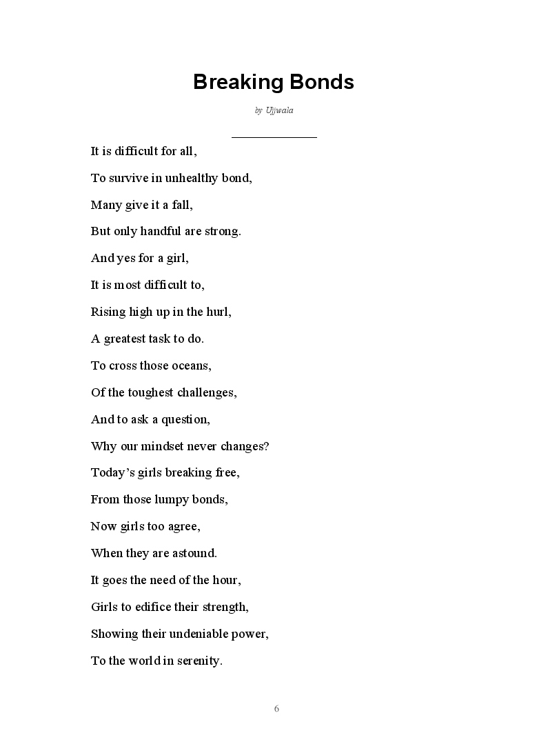 Poetry is one's feelings in a few lines. Some of the poetries in this book depict a normal person's feeling. One can find themselves in such situations and they can feel what goes on in the poem is a real life deal.