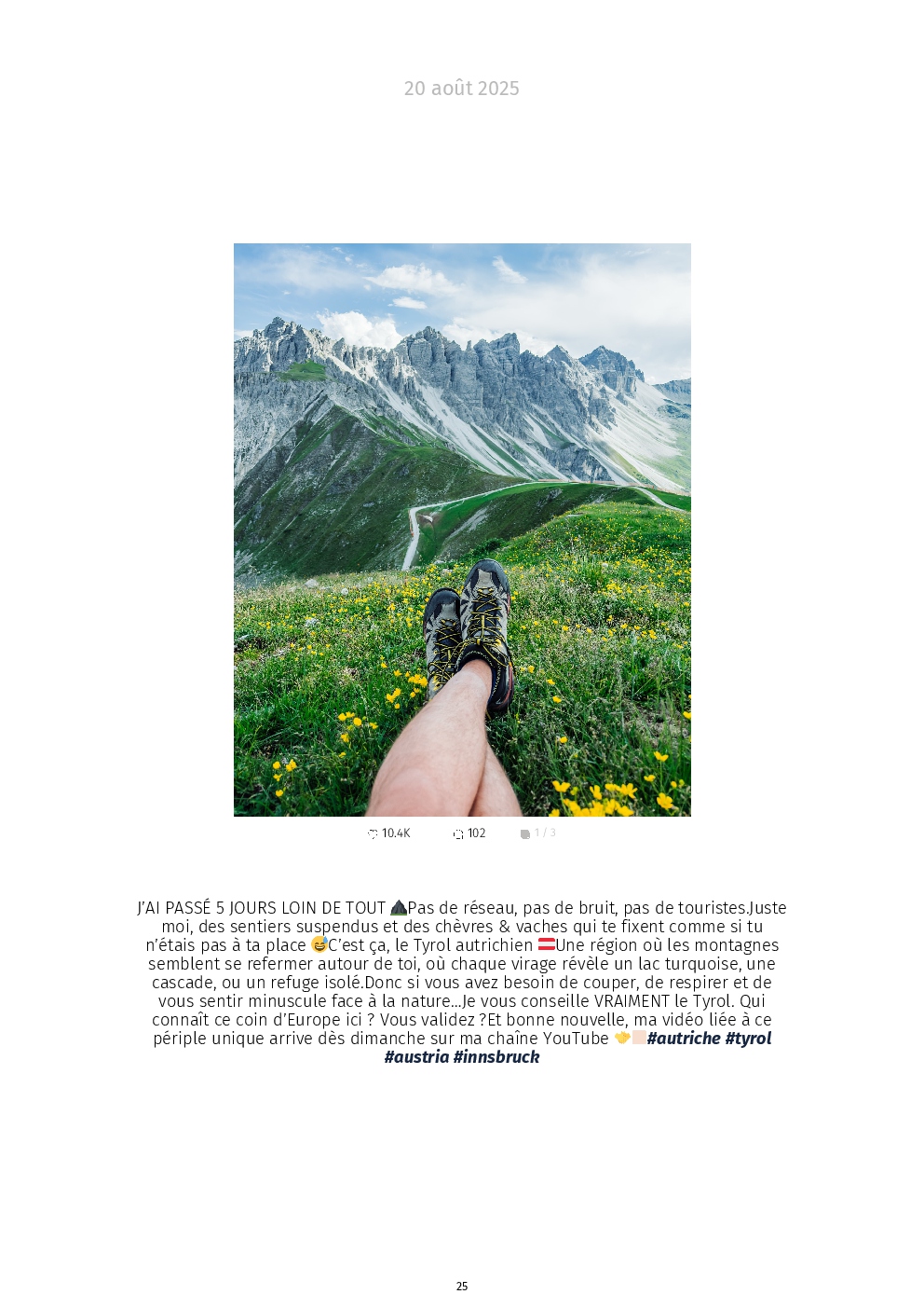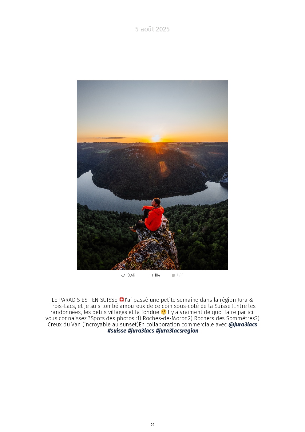 Bruno est sans doute l'un des influenceurs voyage les plus connus en France. Il se démarque par son approche authentique, ses conseils pratiques et son humour. Il a une forte présence sur plusieurs plateformes, partageant ses aventures autour du monde et en France.Votre biographie ici: présentez-vous et faites vous connaître