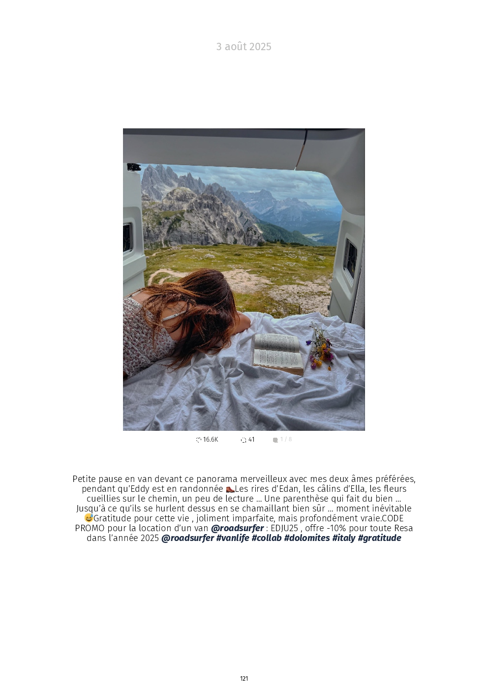 Ancienne candidate de téléréalité, elle a su se faire une place en tant qu'influenceuse voyage et maman. Elle partage ses aventures en famille, mêlant conseils parentaux et découvertes de destinations, ce qui est très apprécié de son audience.