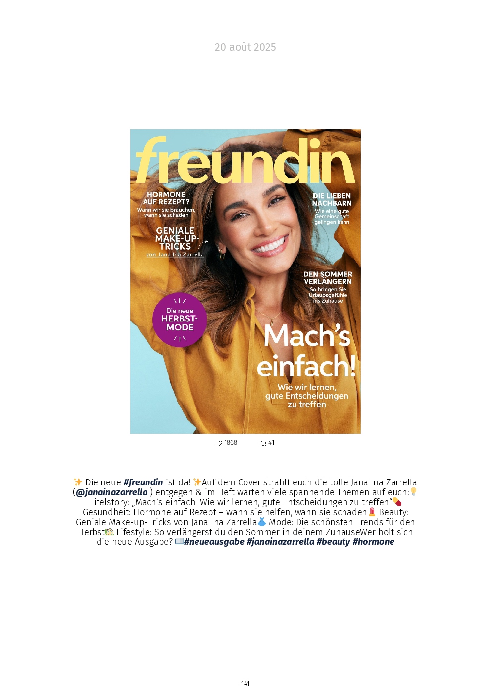 Jana Ina ist als Fernsehmoderatorin und Model bekannt und hat eine große Präsenz auf Instagram, wo sie Einblicke in ihr Familienleben gibt. Ihre Inhalte sind eine Mischung aus Mode, Beauty und Szenen aus dem Leben mit ihren Kindern und ihrem Ehemann.