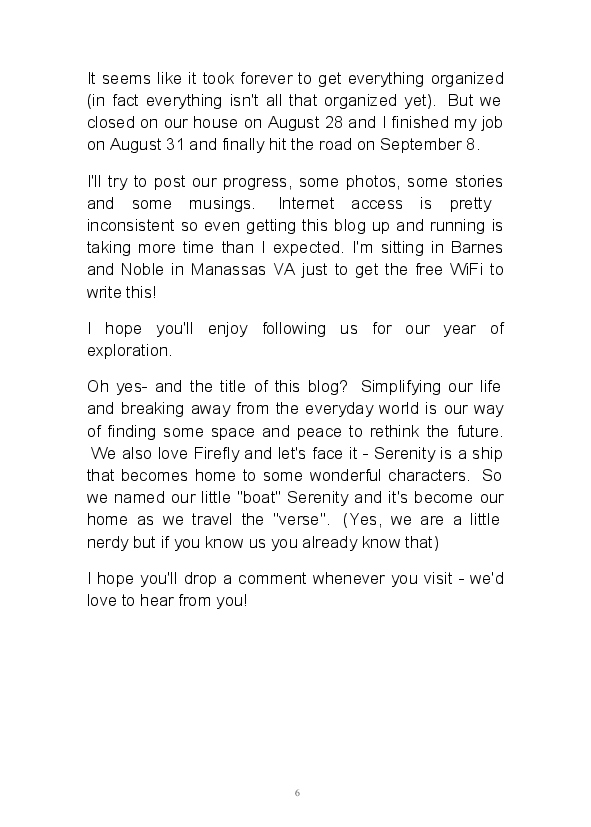 This blog followed the journey of the Good Ship Serenity as it wandered the country. No set plan, no destination, just finding things and living small.