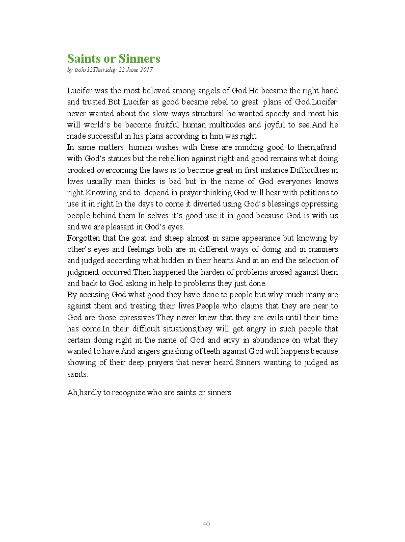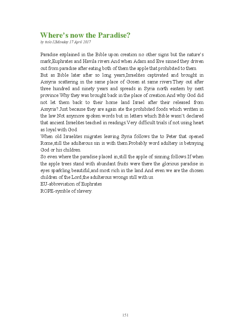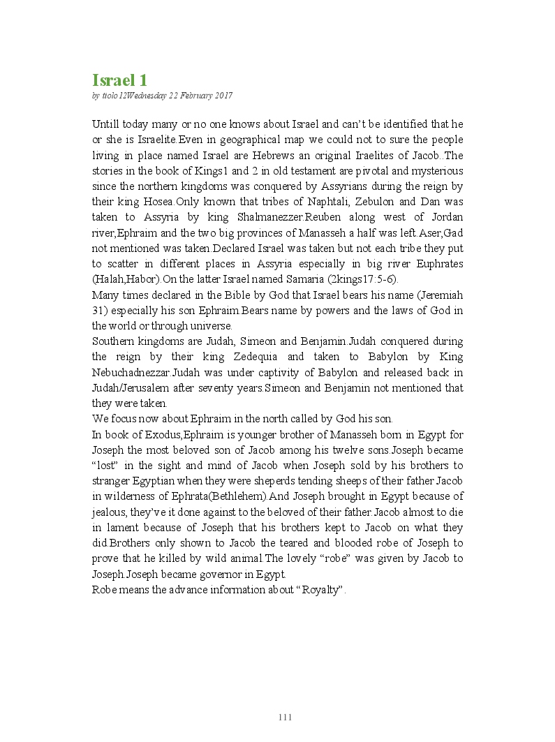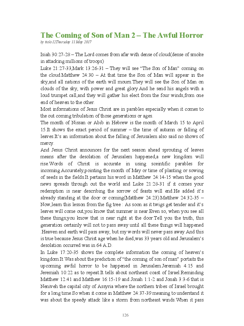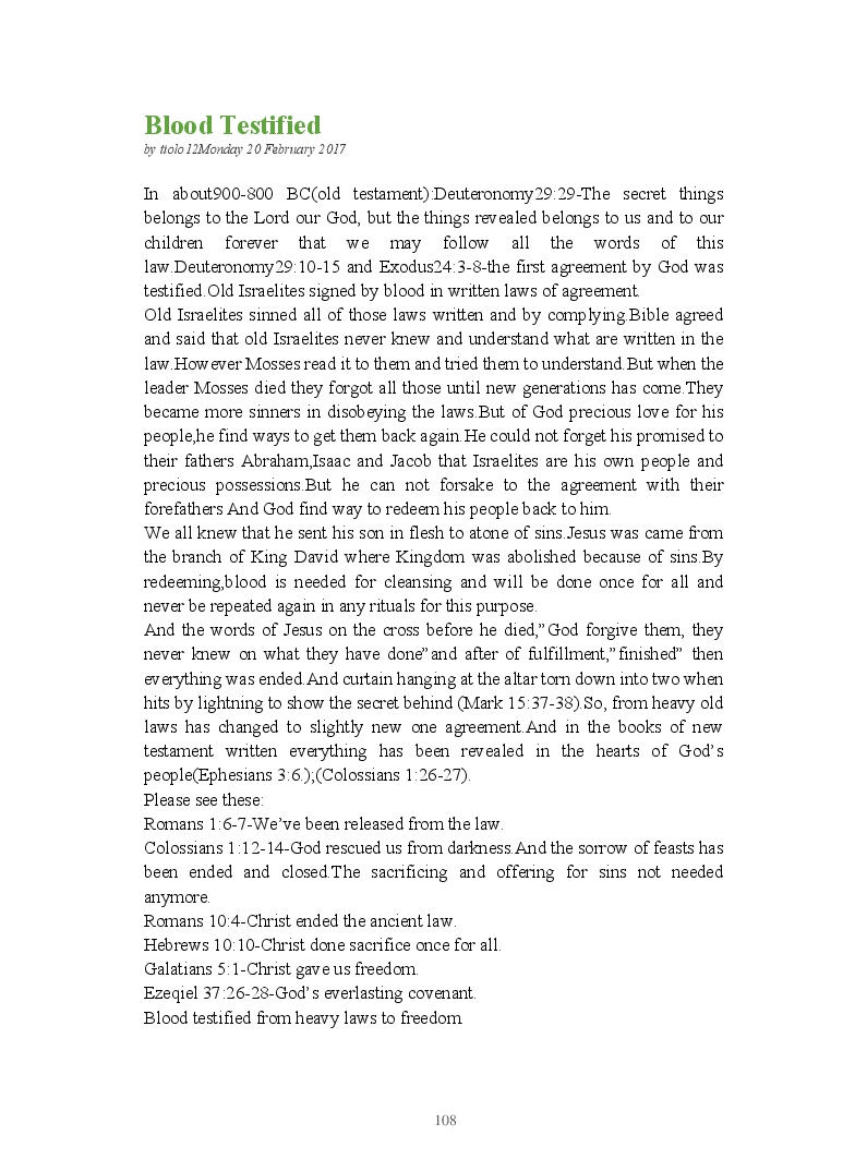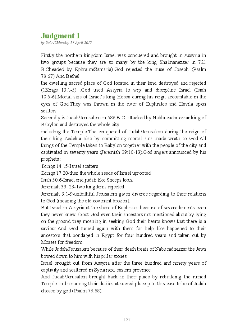 Bible Prophecy Interpretation- about the love story between God and his people.How they separated from God.First commandments made broken because of serious sins committed against God But because of God love and compassion for his children,he find his losts which scatters among nations through out the world and created the new commandments slightly for new people.