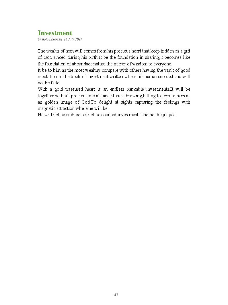 Rodolfo Aponesto Tiolo made the blook of their their blog Wordpress ! Support their creativity by buying their blook or create your own now on BlookUp!