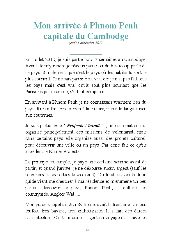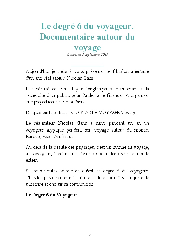 Ce blook contient les billets de mon blog de l'année 2012 à 2016. Je tenais à avoir une trace papier pour que moi ou mon entourage proche puisse le feuilleter à tout moment et lire mes récits de voyage qui me tenaient tellement à coeur.