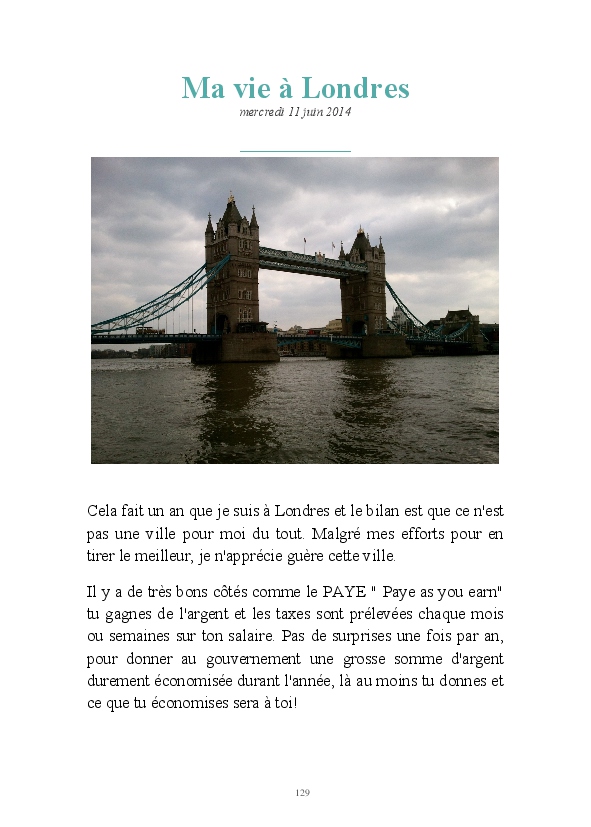 Ce blook contient les billets de mon blog de l'année 2012 à 2016. Je tenais à avoir une trace papier pour que moi ou mon entourage proche puisse le feuilleter à tout moment et lire mes récits de voyage qui me tenaient tellement à coeur.